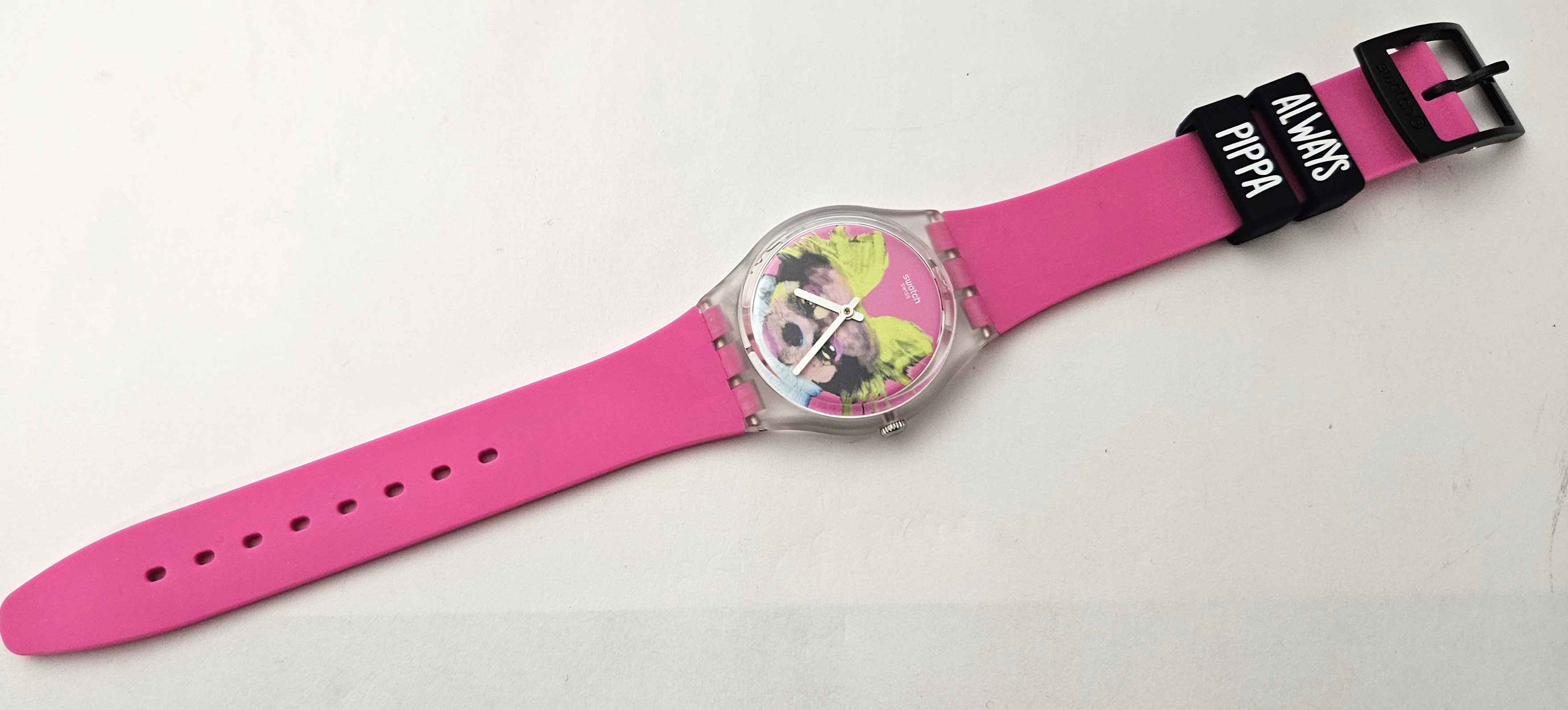 Swatch Gent 2019 - GE267 - Pinkapippa - NUOVO - perfettamente funzionante nella sua custodia originale - Display analogico - Resistente all'acqua fino a 3 bar - Tipo di movimento quarzo - diametro cassa 34 mm -
