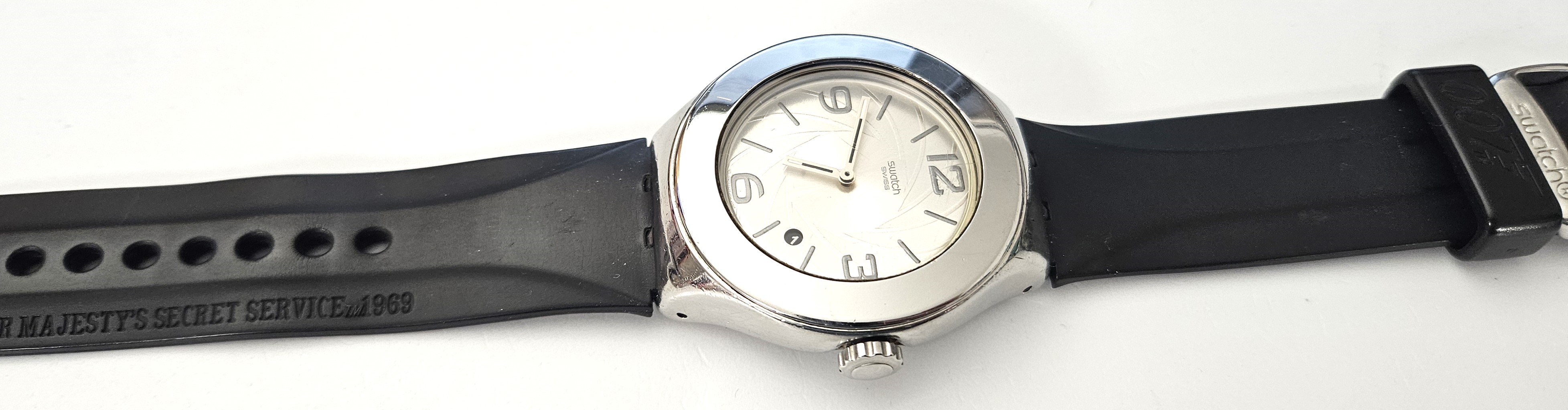 Swatch Special 007 Irony Nabab 2002 - YNS402 - On her majesty secret service - USATO - diametro cassa 44,5 mm - perfettamente funzionante SENZA la sua custodia originale - Display Analogico - Resistente all'acqua fino a 3 bar - Tipo di movimento Quarzo Svizzero - cinturino in gomma -