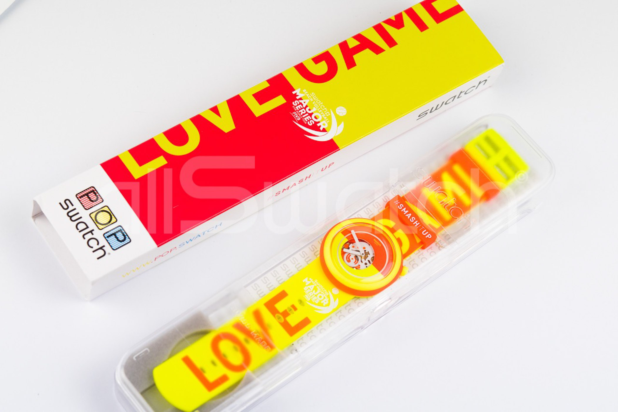 Swatch Special Pop 2016 - PNO100C - Lovethisgame - FIVB tour 2016 - Nuovo - perfettamente funzionante nella sua custodia originale - Display analogico - Resistente all'acqua fino a 3 Bar - Tipo di movimento Quarzo Svizzero