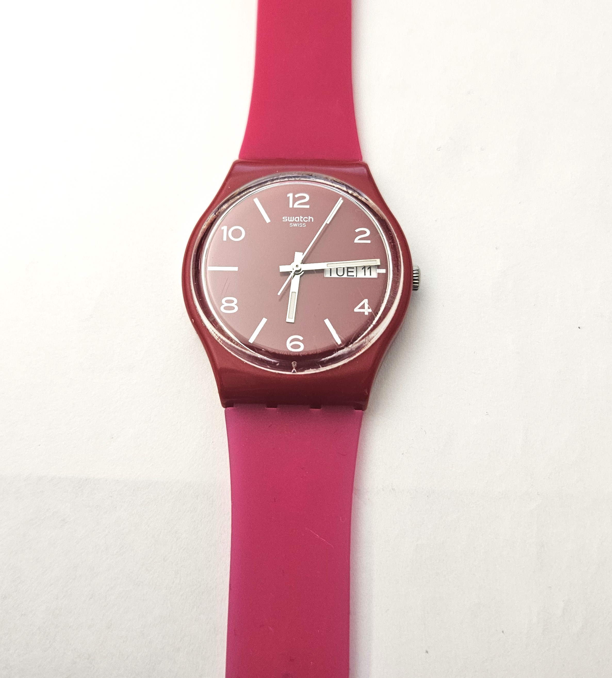 Swatch Gent 2023 - SO28O401 - Coral dreams - Leggermente usato - perfettamente funzionante senza la sua custodia originale - Display analogico - Resistente all'acqua fino a 3 Bar - Tipo di movimento Quarzo Svizzero - Cassa in Plastica con diametro di 34 mm.-
