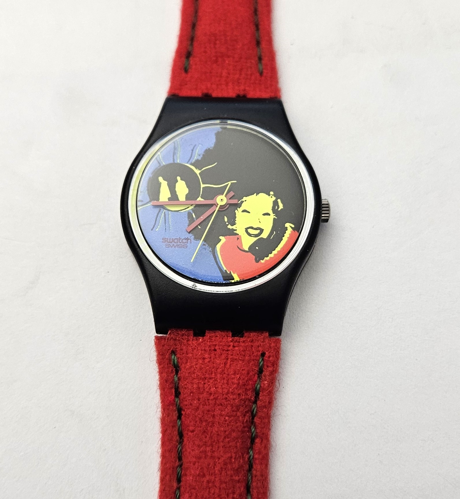 Swatch Standards 1990 - GN703 - Passion Flower - Nuovo - perfettamente funzionante nella sua custodia originale - Molto bello da collezionare ma non adatto ad essere utilizzato perchè il cinturino si spacca facilmente - Display analogico - Resistente all'acqua fino a 3 Bar - Tipo di movimento Quarzo Svizzero - Cassa e Cinturino in Plastica