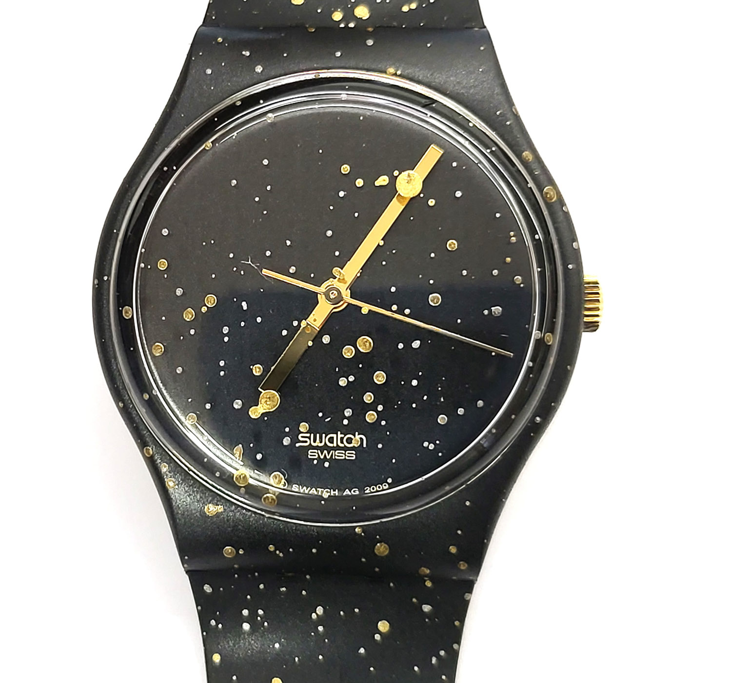 Swatch Special 2009 - GZ206 - Club Event Gold & Pioneer 2009 GOLDEN GROOVE - NUOVO - Limitazione 200 pezzi questo è il 181 - ogni orologio è differente perchè sono stati spruzzati singolarmente - perfettamente funzionante nella sua custodia originale - Display analogico - Resistente all'acqua fino a 3 bar - Tipo di movimento Quarzo Svizzero