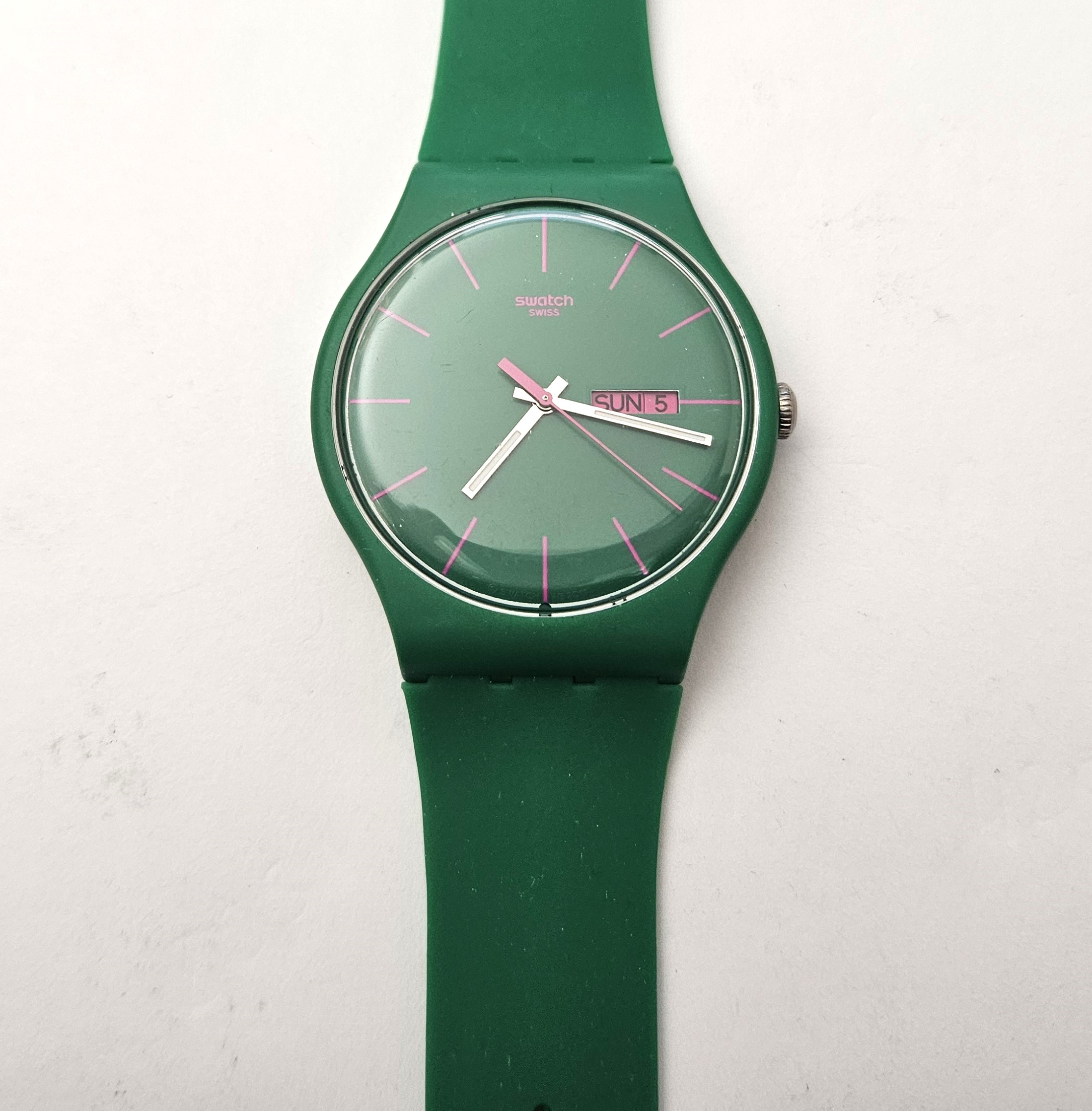 Swatch New Gent 2012 - SUOG704 - Green Rebel - Leggermente usato - perfettamente funzionante senza la sua custodia originale - Display analogico - Tipo di movimento quarzo svizzero - Resistente all'acqua fino a 3 bar - diametro cassa 41 mm -