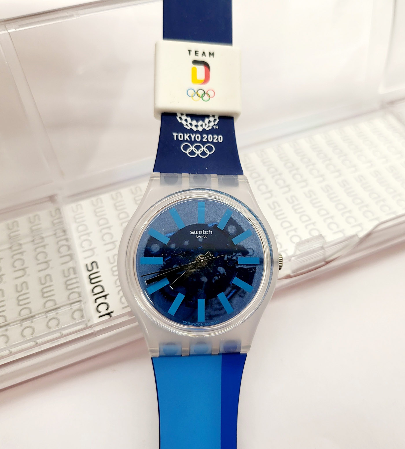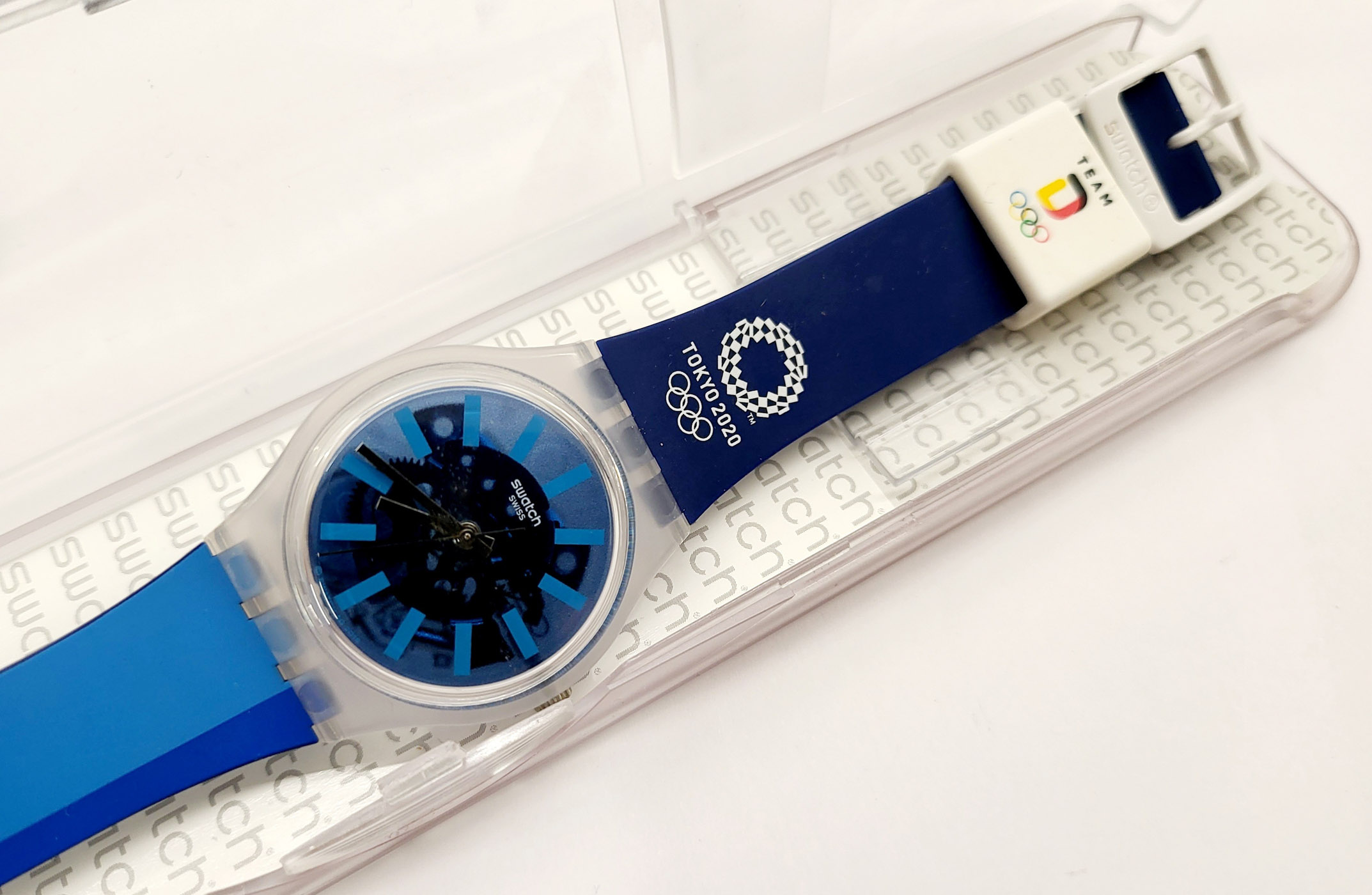 Swatch Special 2020 - GZ336CI - Tokyo Gent 2020 team Germania - NUOVO - Olimpiadi Tokyo 2020 - diametro cassa 34 mm - perfettamente funzionante nella sua custodia originale - Display analogico - Resistente all'acqua fino a 3 bar - Tipo di movimento Quarzo Svizzero -