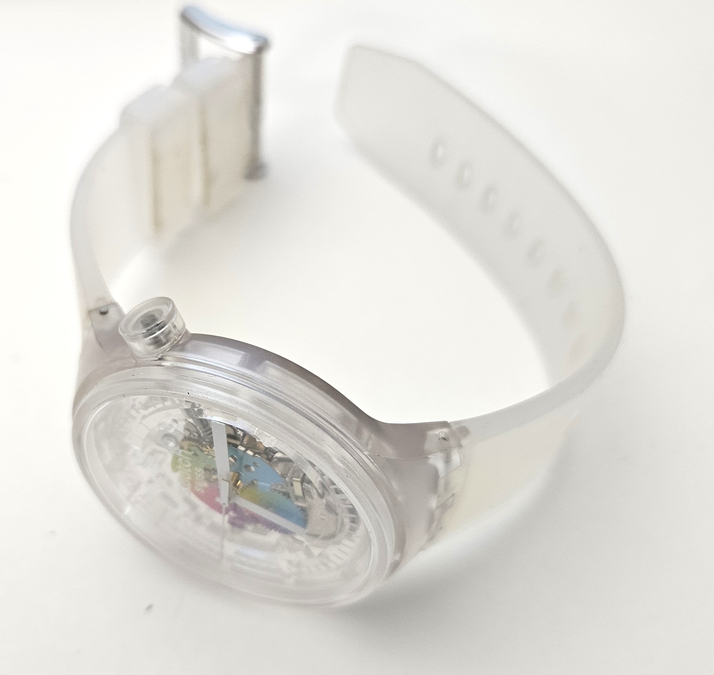 Swatch Special Pride 2021- SO27E107 - Let's Parade - Leggermente usato - perfettamente funzionante senza la sua custodia - Display analogico - Resistente all'acqua fino a 3 bar - Tipo di movimento Quarzo Svizzero - Cassa in plastica e Cinturino in silicone -