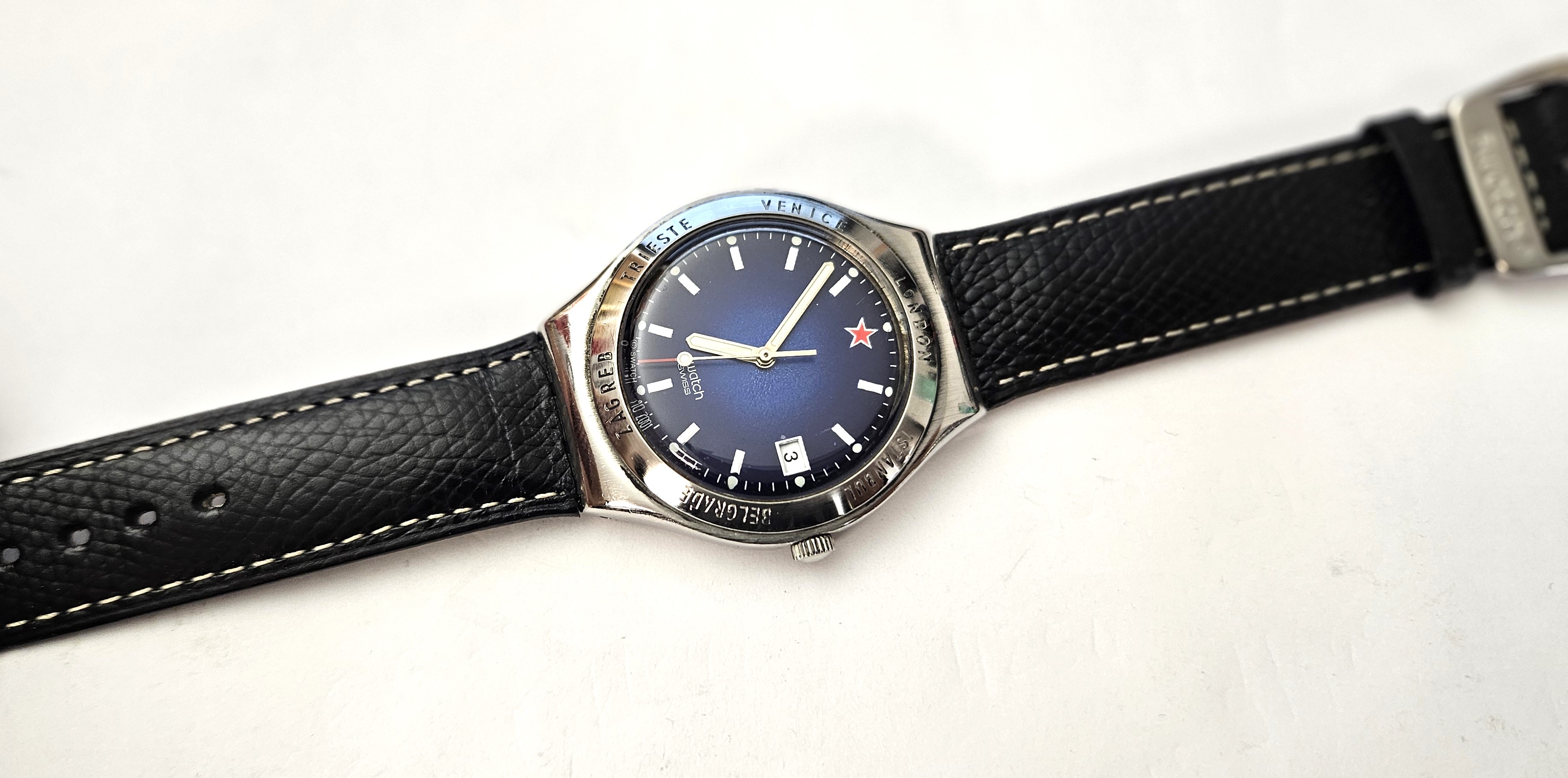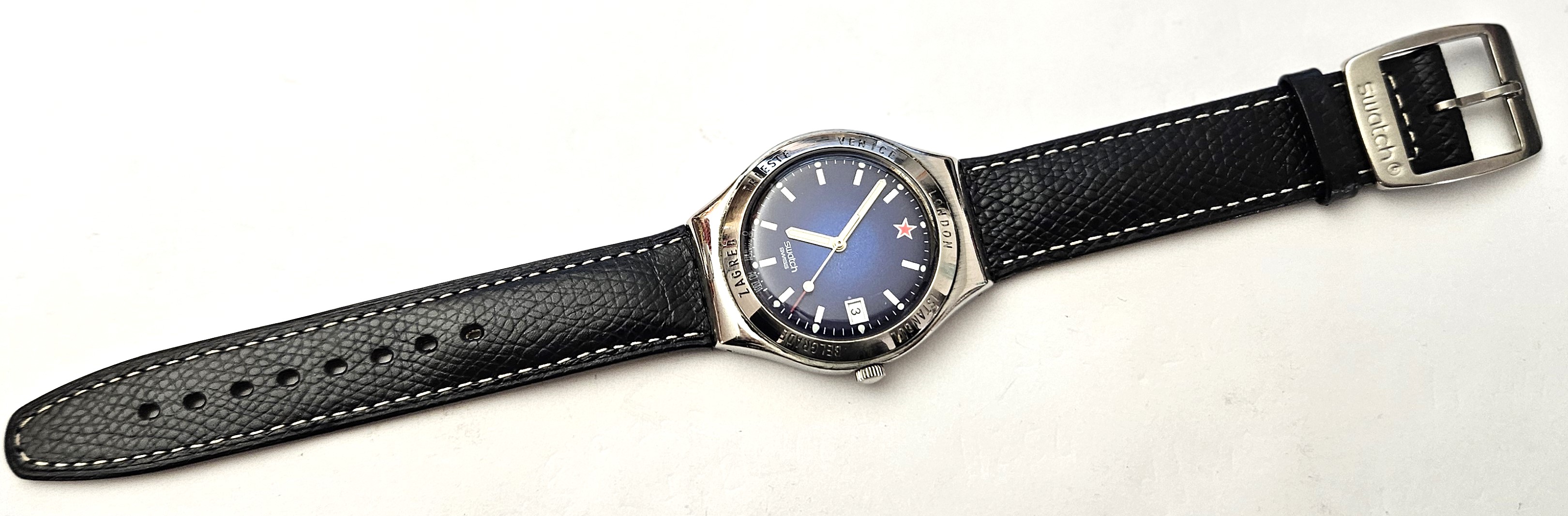 Swatch Special 007 - 2002 - YGS423 - From Russia with love - Leggermente usato - perfettamente funzionante nella sua custodia originale in plastica - Display analogico - Resistente all'acqua fino a 3 Bar - Tipo di movimento Quarzo Svizzero - cinturino originale in pelle nuovo -