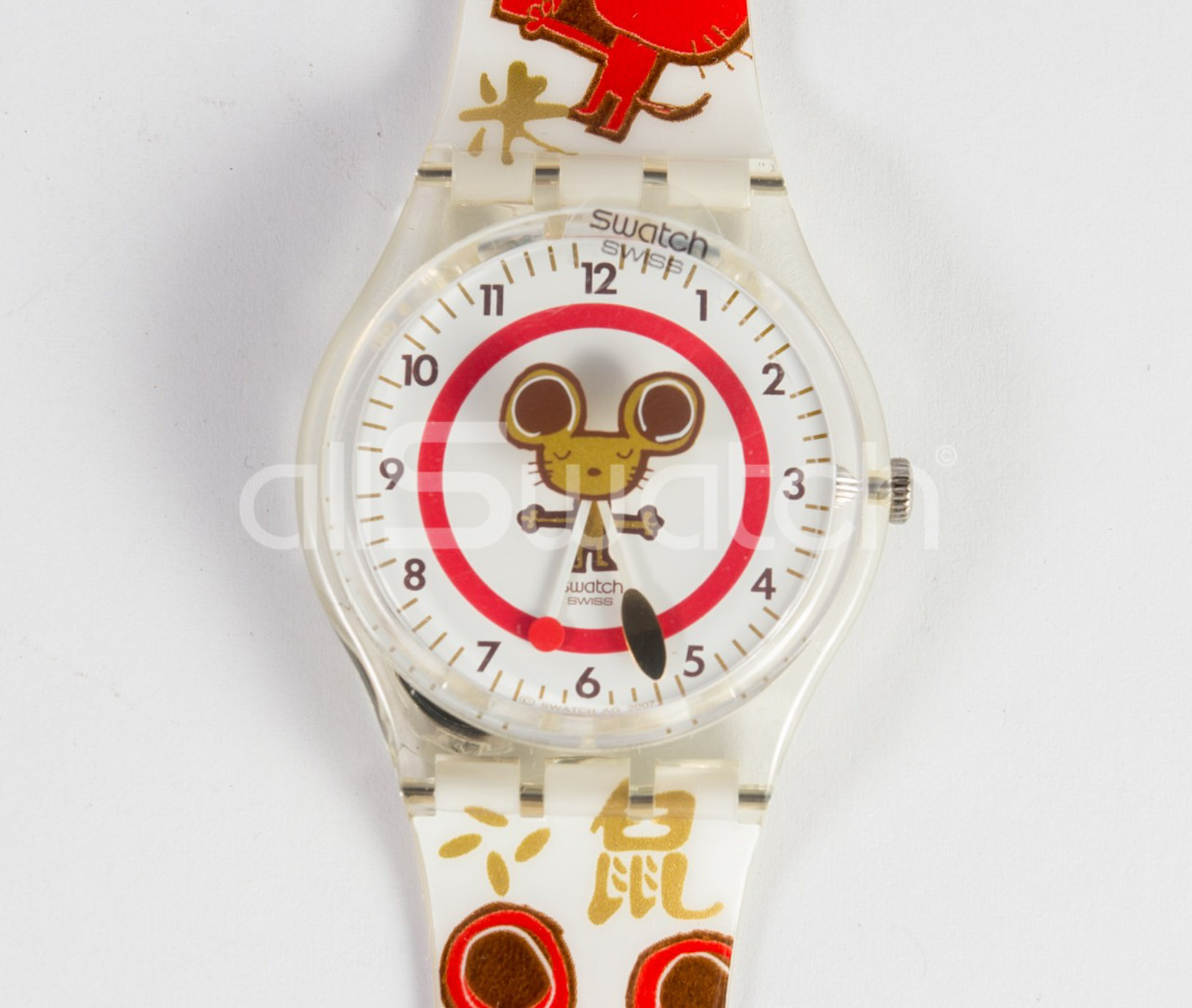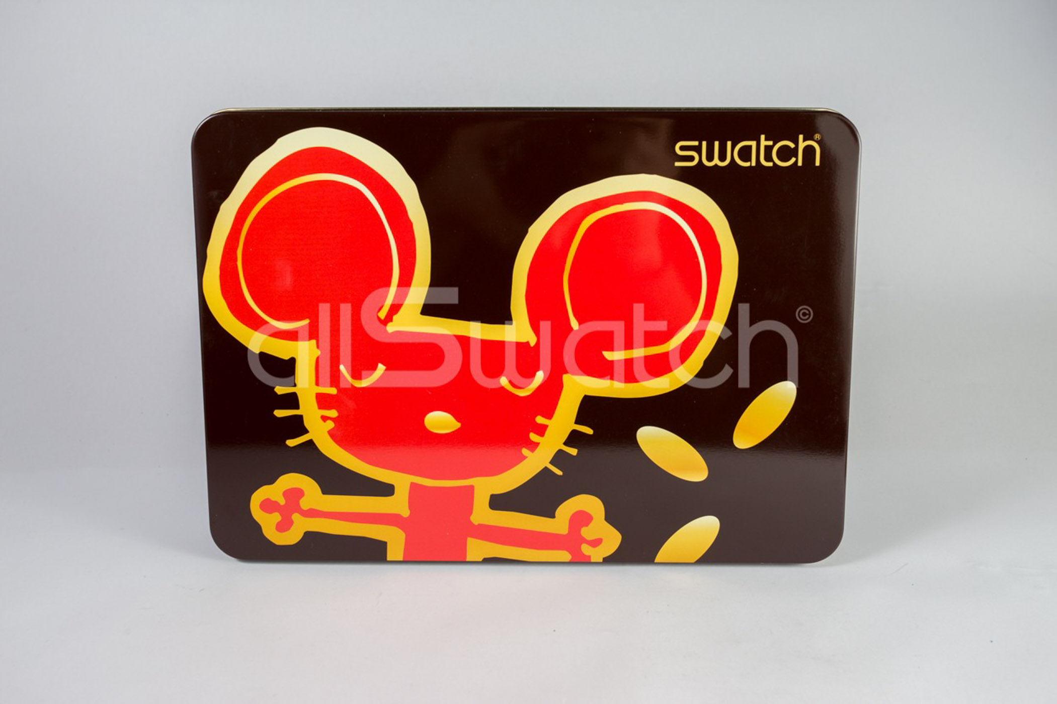 Swatch Special 2008 - GE201 - Cute Rats - NUOVO - Capodanno Cinese - perfettamente funzionante nella custodia Speciale - Display analogico - Resistente all'acqua fino a 3 bar - Tipo di movimento Quarzo Svizzero - Cassa e Cinturino in Plastica
