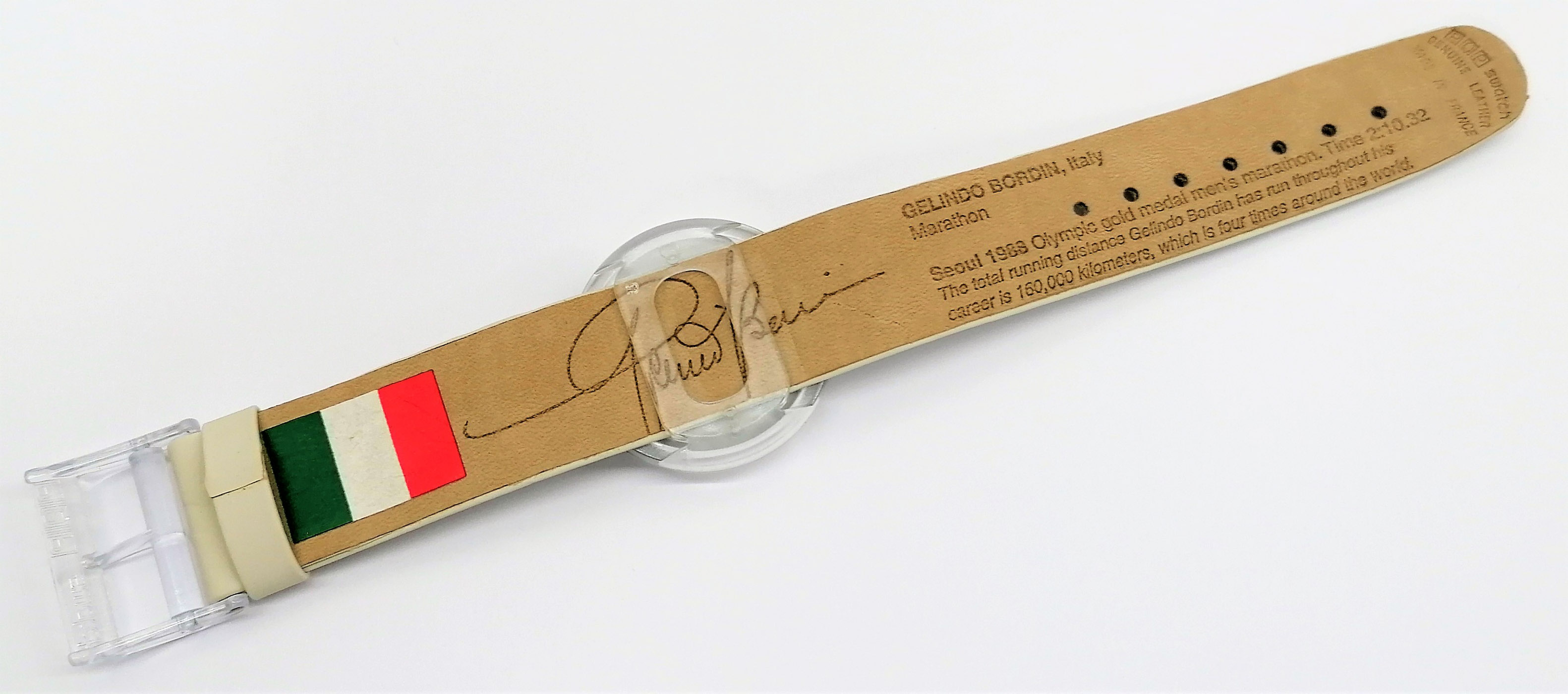 Swatch Special 1996 - PMZ104 - Gelindo Bordin - NUOVO - Occasione Olympic Games 1996 - perfettamente funzionante nella custodia originale - Display analogico - Resistente all'acqua fino a 3 bar - Tipo di movimento Quarzo Svizzero - Cassa e Cinturino in Plastica