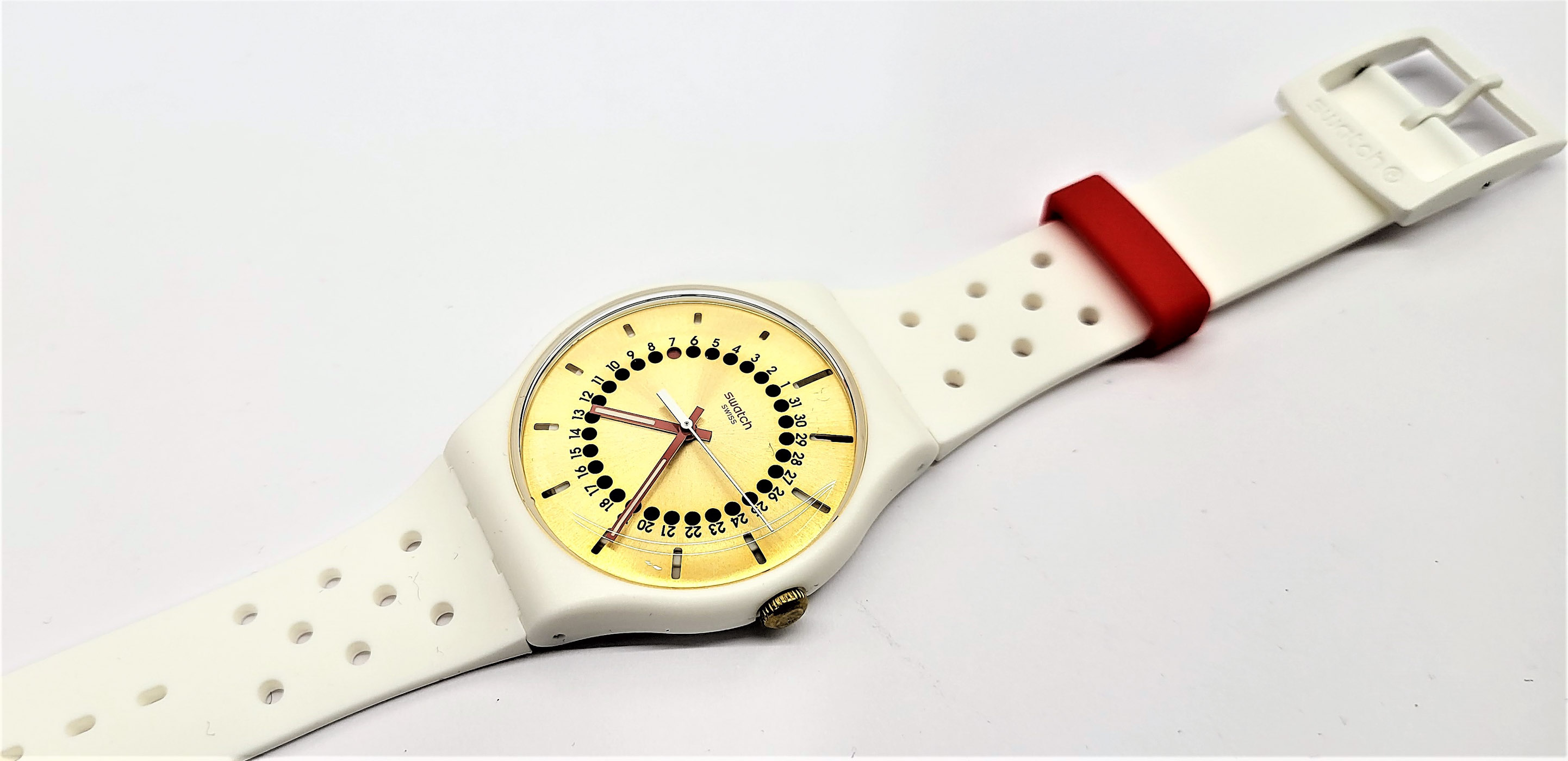Swatch Special 2003 - GN212C - Montreaux Jazz Festival 2003 - NUOVO - by Ted Scapa - perfettamente funzionante nella sua custodia originale - Display analogico - Resistente all'acqua fino a 3 bar - Tipo di movimento Quarzo Svizzero - Cassa e Cinturino in Plastica