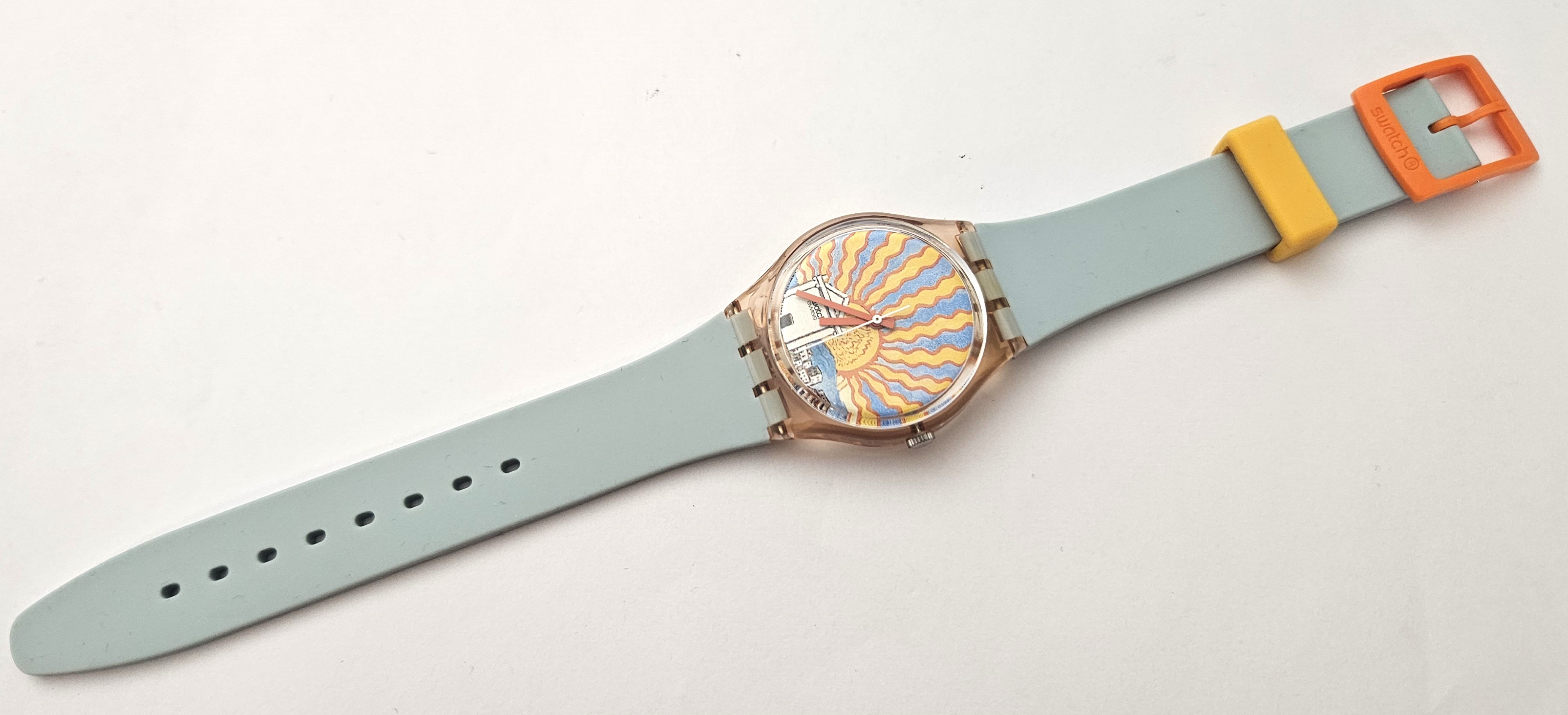 Swatch Standards 1993 - GP107 - Il Poeta - NUOVO con cinturino in pelle perfettamente funzionante nella sua custodia originale - Display Analogico - Resistente all'acqua fino a 3 bar - Tipo di movimento quarzo svizzero - Cassa in plastica e cinturino in silicone -