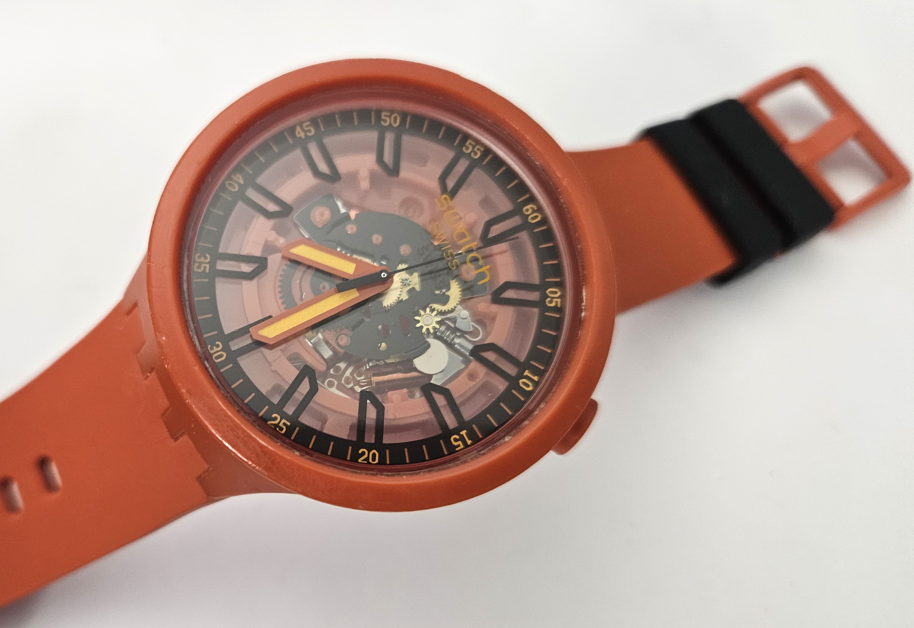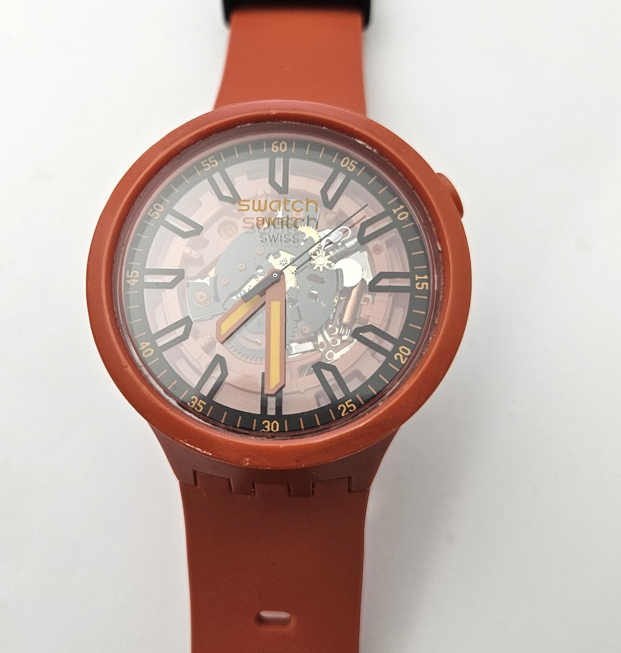 Swatch Big Bold 2021 - SB01R100 - Swatch Open Hearts - Usato leggermente - perfettamente funzionante senza la sua custodia originale - Display Analogico - Resistente all'acqua fino a 3 Bar - cinturino nuovo in silicone -