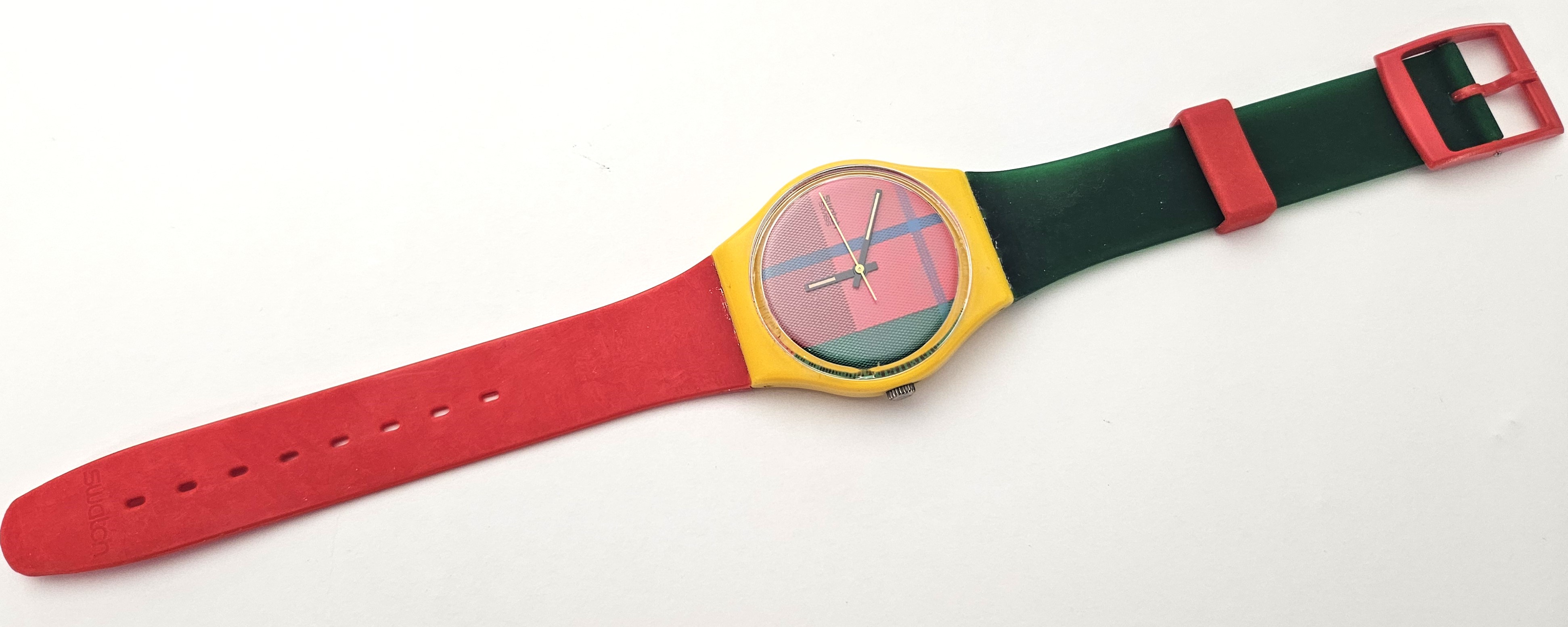 Swatch Standards 1985 - GJ100 - Mc Gregor - Leggermente usato - come da foto - perfettamente funzionante nella sua custodia originale - Display analogico - Resistente all'acqua fino a 3 bar - Tipo di movimento Quarzo Svizzero - cinturino nuovo originale -