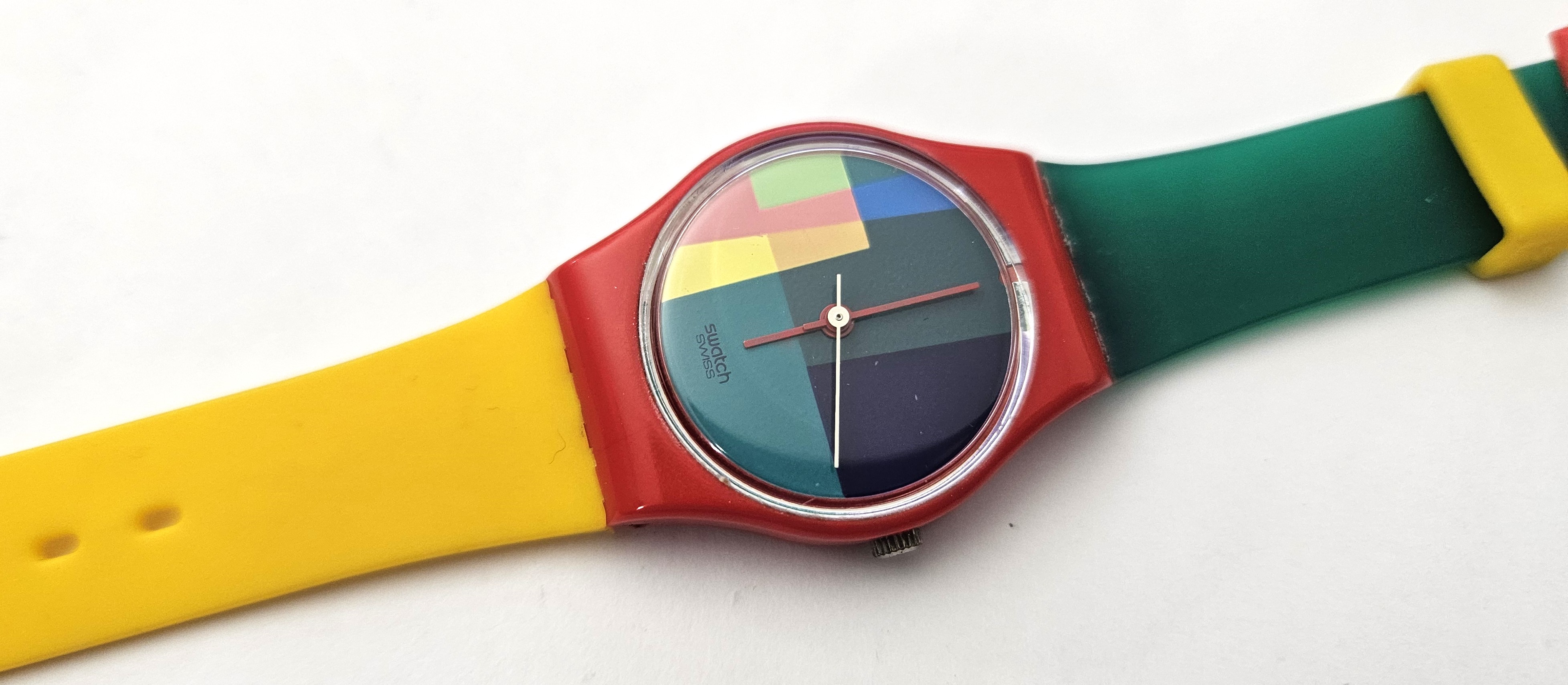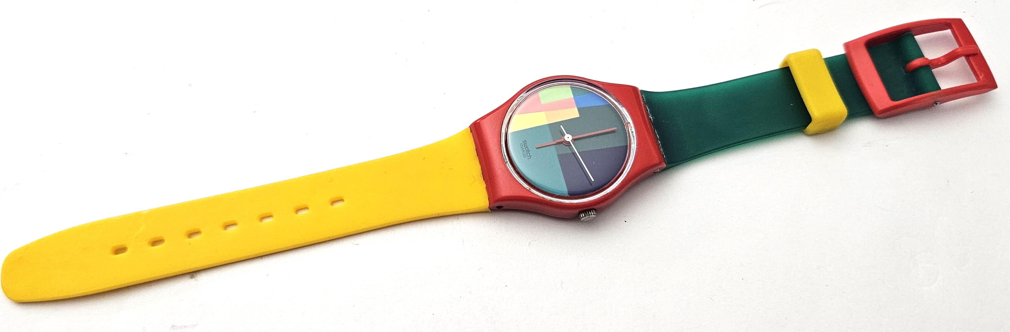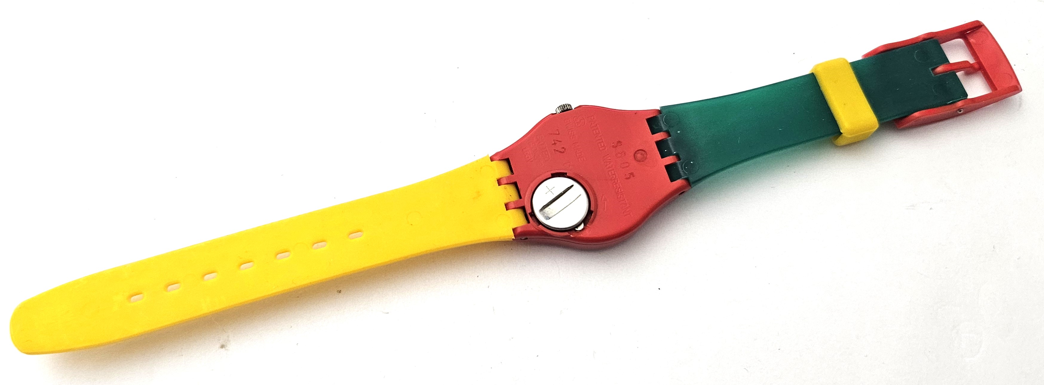 Swatch Standards Lady 1985 - LR105 - McSwatch cinturino baby strap - Leggermente usato - L'orologio ha una rottura vicono al copri batteria ma si chiude regolarmente, perfettamente funzionante nella sua custodia originale - Display analogico - Resistente all'acqua fino a 3 Bar - Tipo di movimento Quarzo Svizzero