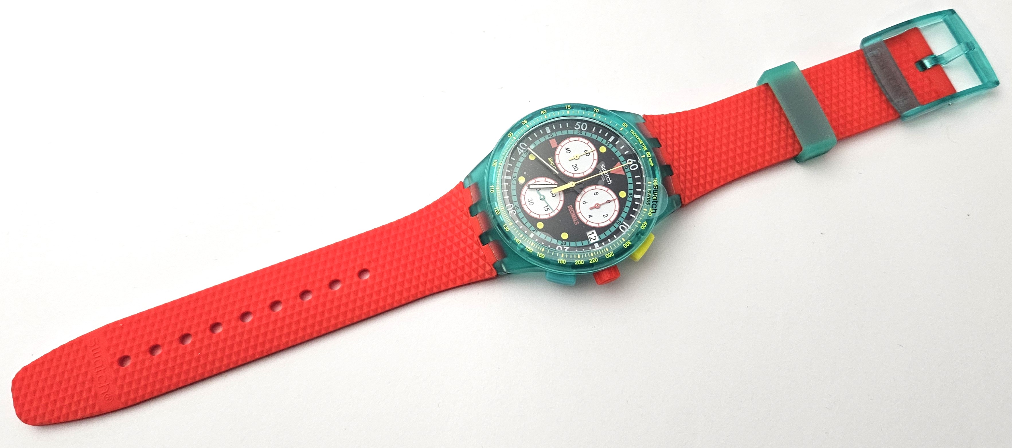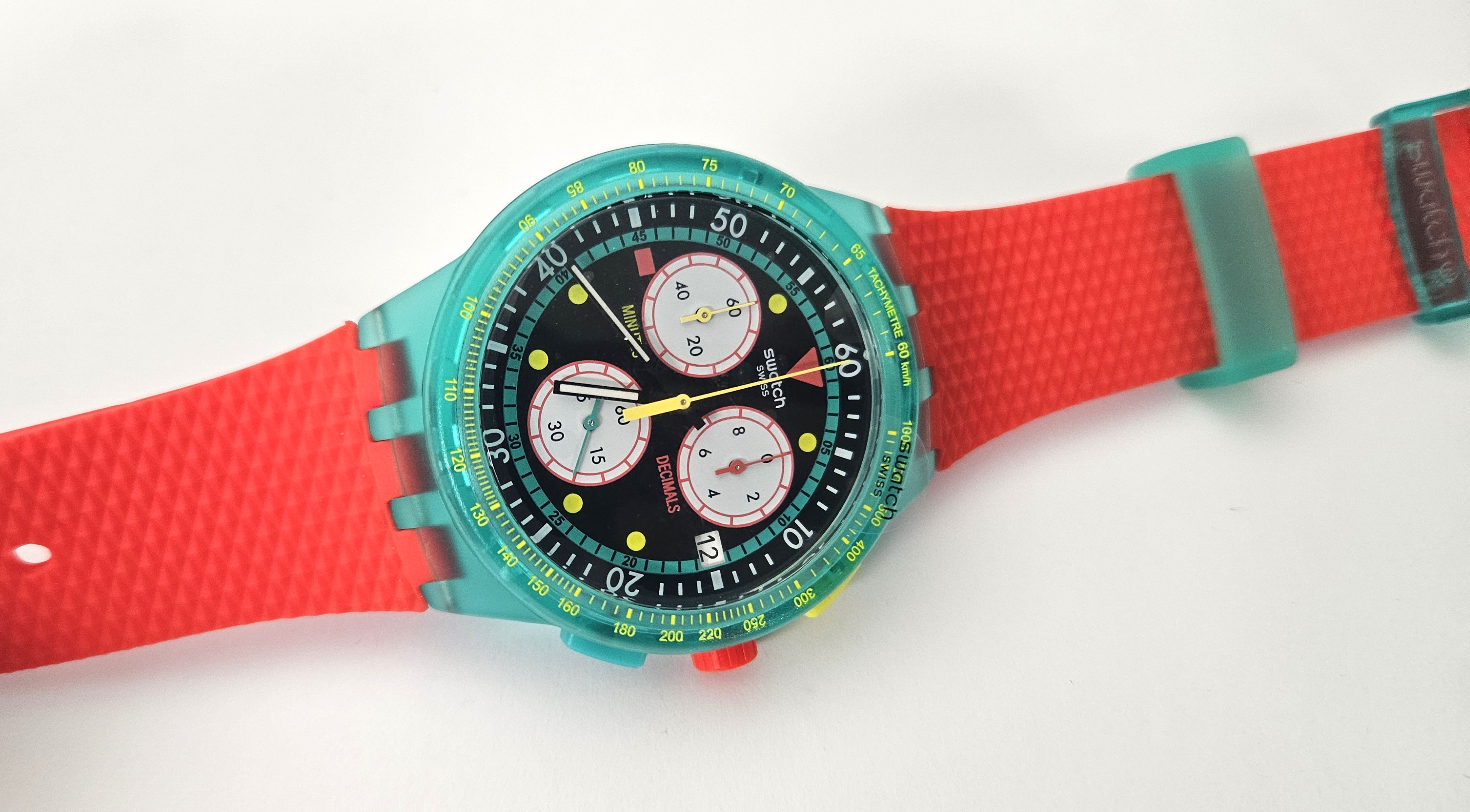 Swatch New Chrono 2025 - SUSG409 - Neon Emerald chrono - NUOVO - diametro cassa 42 mm . - perfettamente funzionante nella sua custodia originale - Display Chronografo - Resistente all'acqua fino a 3 bar - Cinturino in silicone -