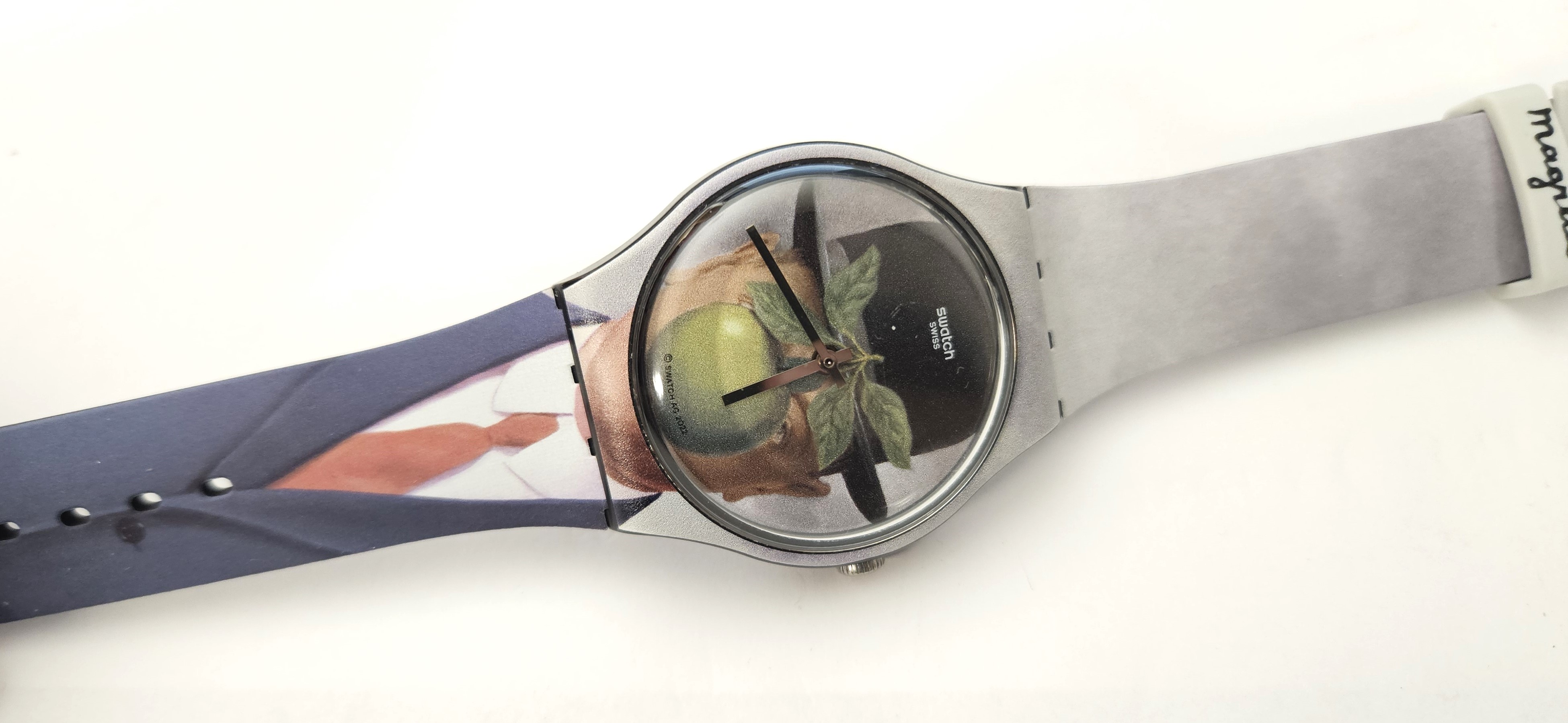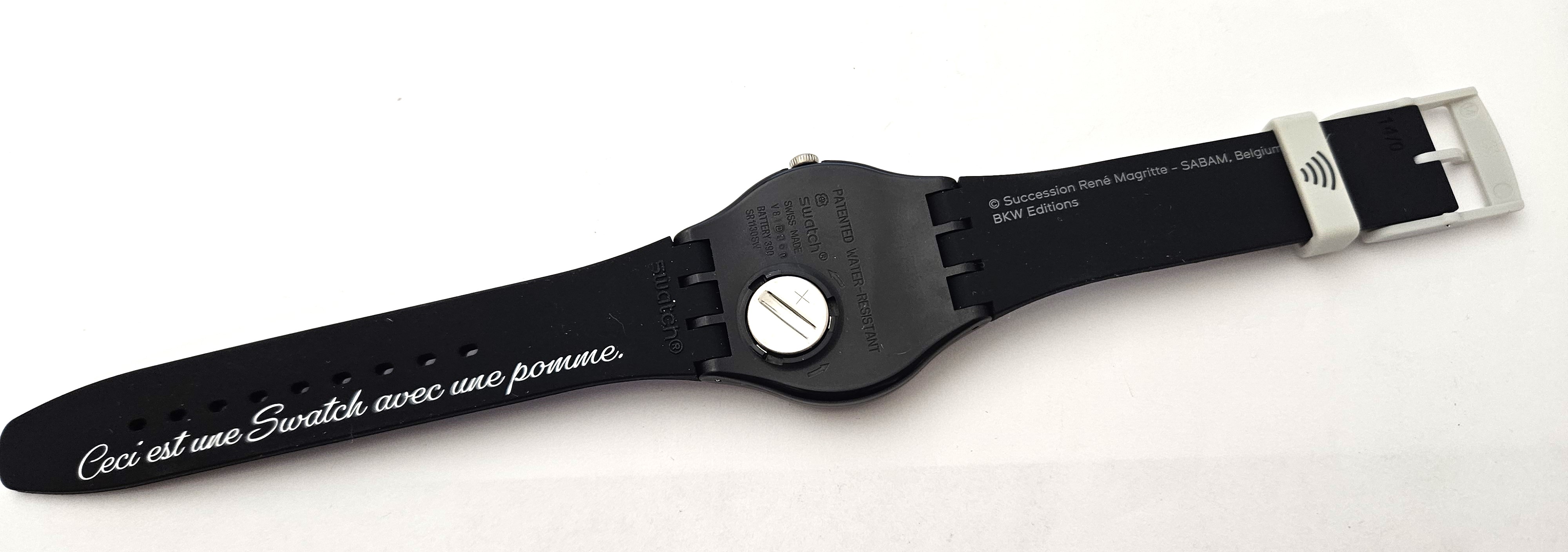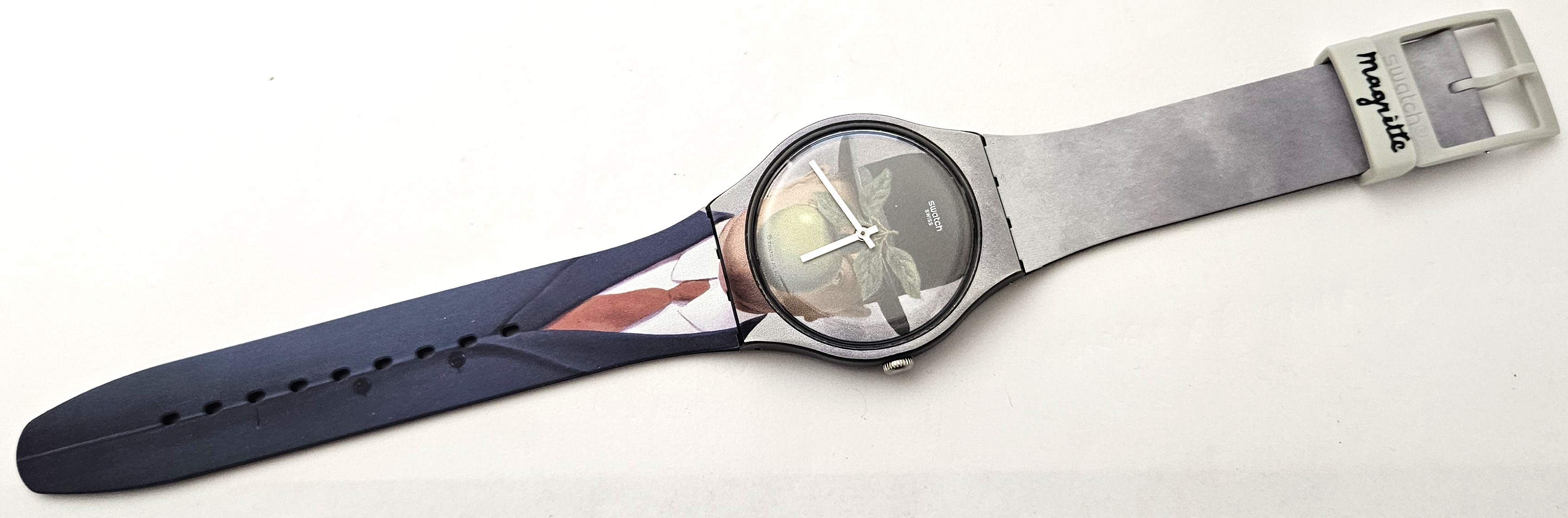 Swatch Special 2023 - SVIZ103-5300 - The Surreal Pay! by Rene Magritte - Leggermente usato - perfettamente funzionante senza la custodia originale - Display analogico - Resistente all'acqua fino a 3 bar - Tipo di movimento Quarzo Svizzero - Cassa in plastica e Cinturino in gomma nuovo - diametro cassa 41 mm -