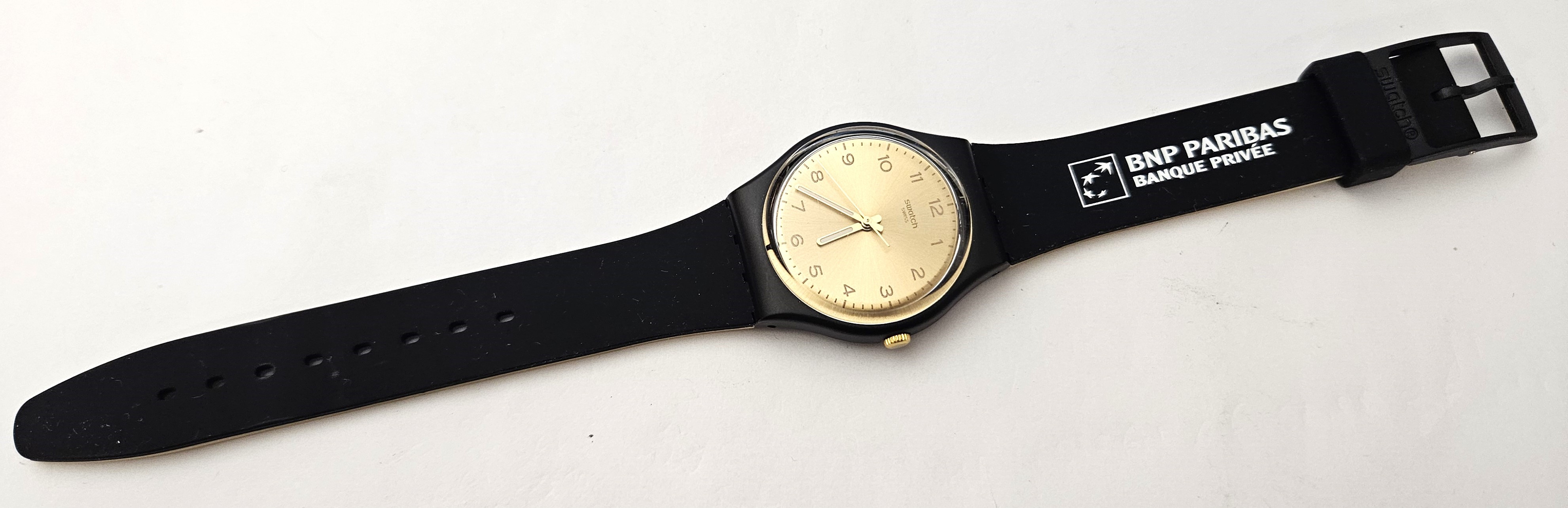 Swatch Standards 2018 - GB288 - Golden Friend too promo BNP Paribas - NUOVO - perfettamente funzionante nella sua custodia originale - Display analogico - Resistente all'acqua fino a 3 bar - Tipo di movimento Quarzo Svizzero - Cassa in Plastica e cinturino in gomma -