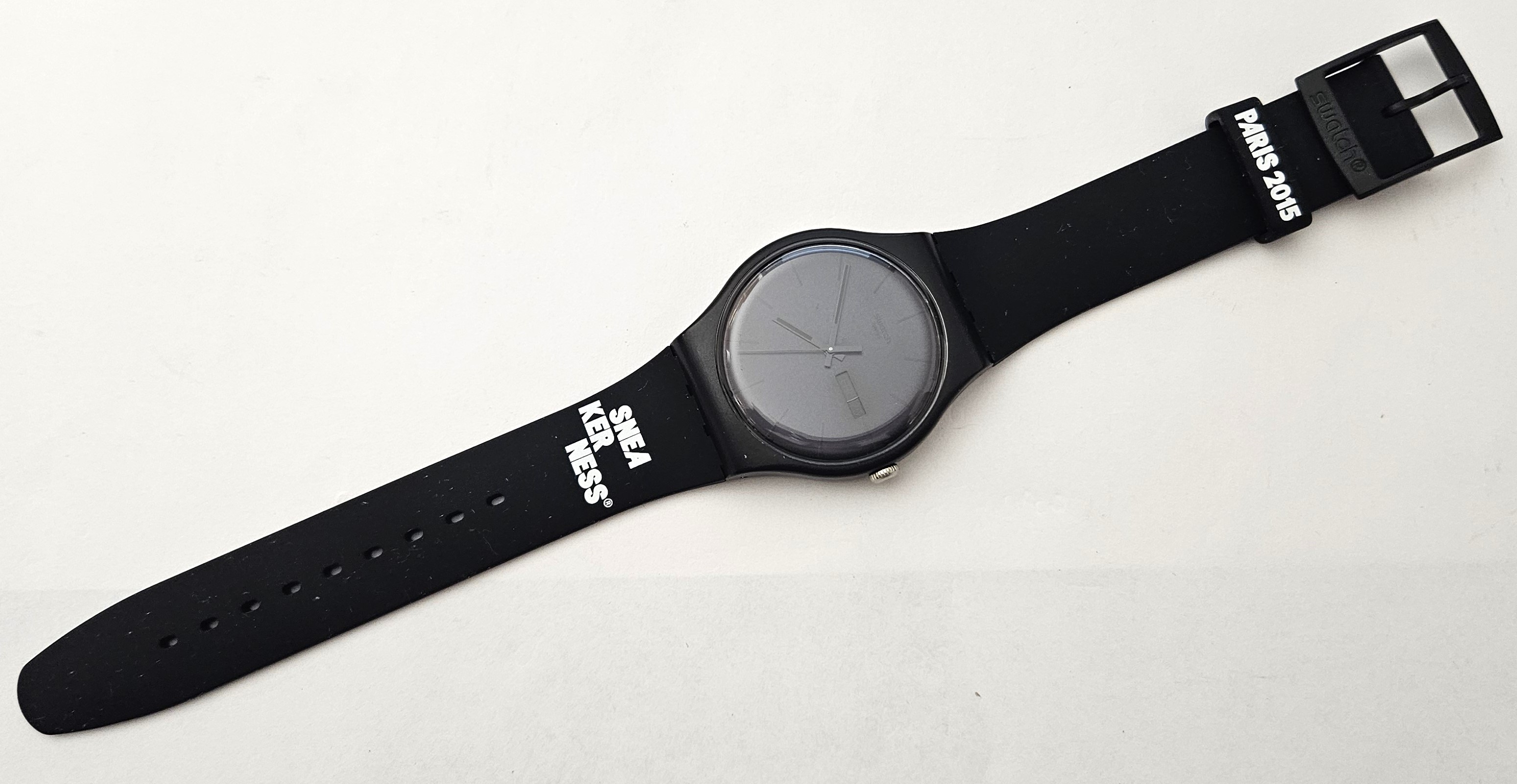 Swatch New Gent 2015 - SUOB702P - Black Rebel promo Snea ker ness Paris 2015 - Nuovo - diametro cassa 41 mm - perfettamente funzionante nella sua custodia originale - Il cartone esterno è leggermente rovinato - Display analogico - Resistente all'acqua fino a 3 Bar - Tipo di movimento Quarzo Svizzero