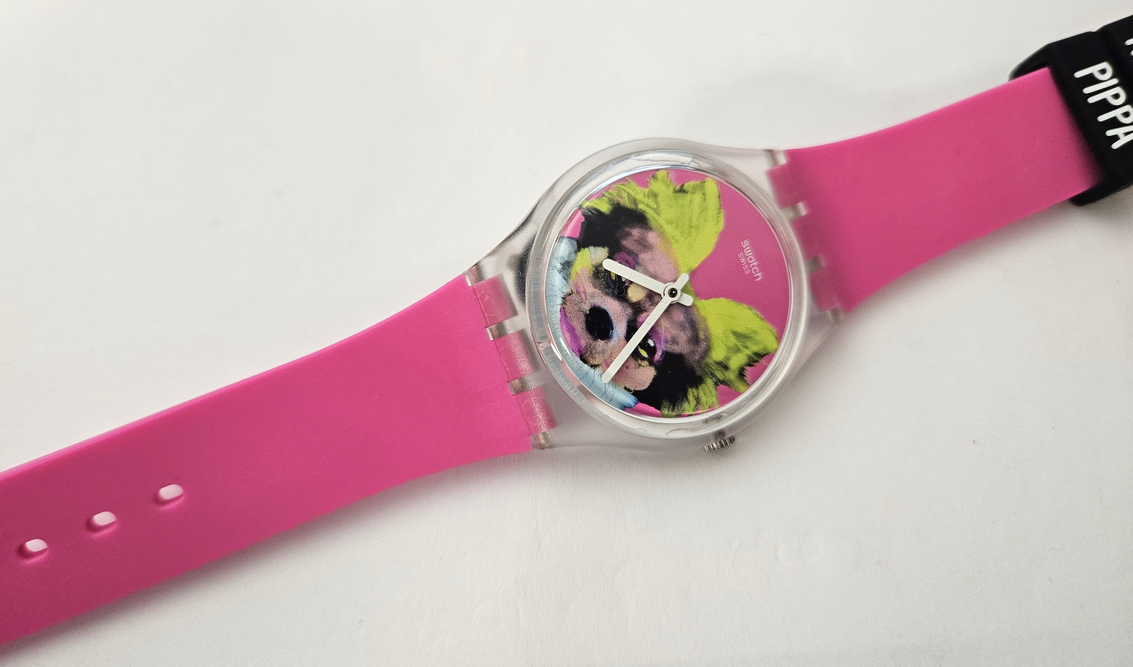 Swatch Gent 2019 - GE267 - Pinkapippa - NUOVO - perfettamente funzionante nella sua custodia originale - Display analogico - Resistente all'acqua fino a 3 bar - Tipo di movimento quarzo - diametro cassa 34 mm -