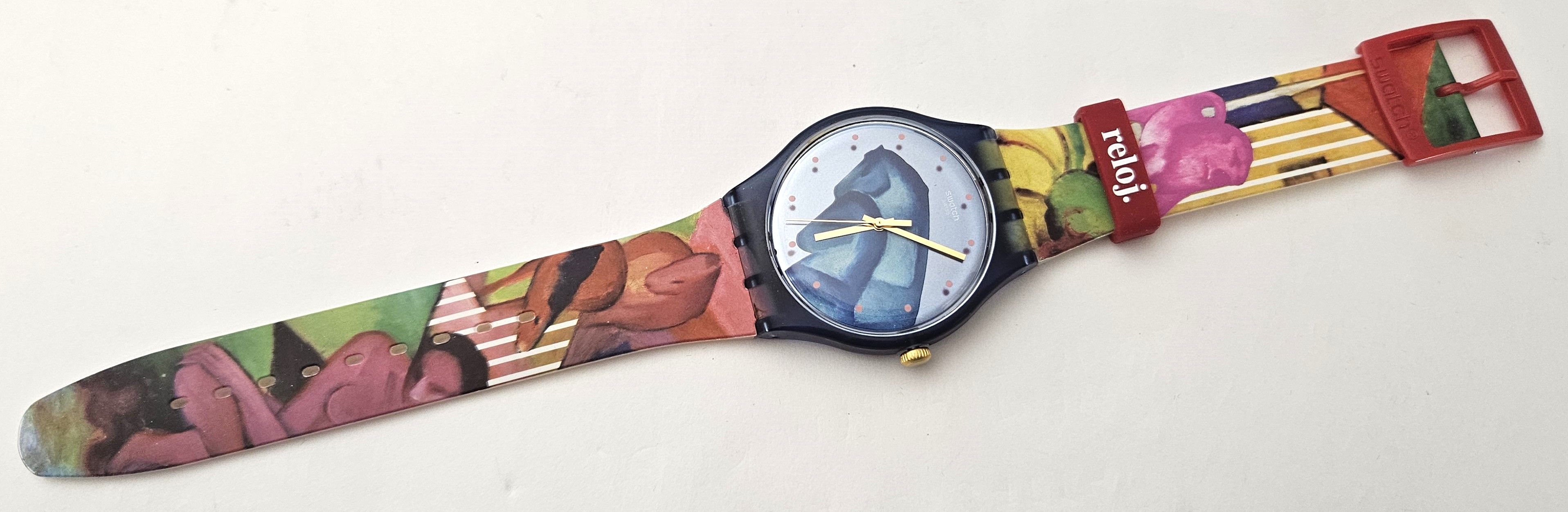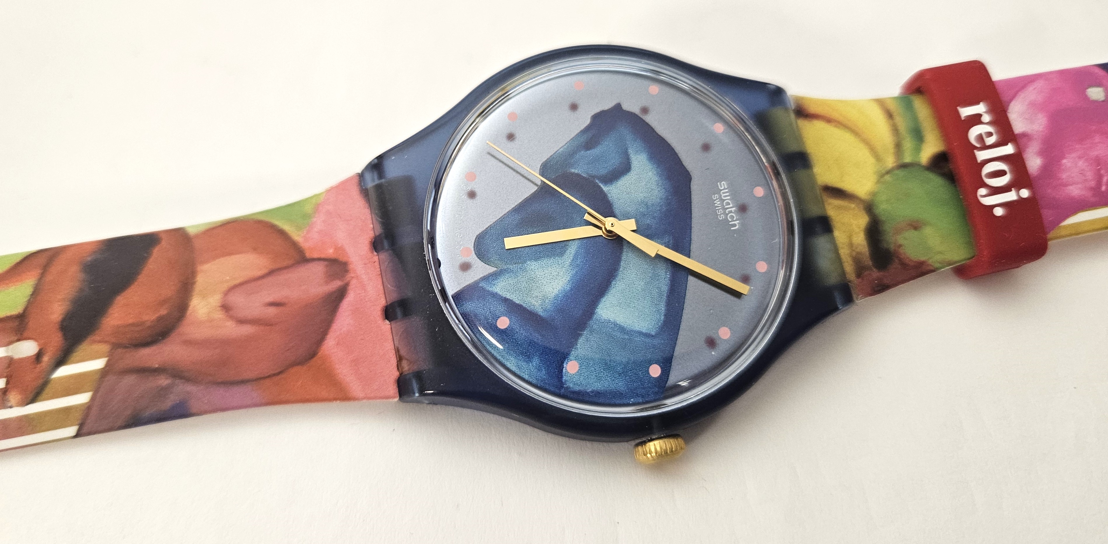Swatch Special 2018 - SUOZ298 - Sleepy Garden - Nuovo - Orologio nato in collaborazione con il museo Thyssen Bornemisza di Madrid, raffigurante un'opera di Franz Marc del 1912 "The Dream" - perfettamente funzionante nella sua custodia originale - Display Analogico - Resistente all'acqua fino a 3 Bar