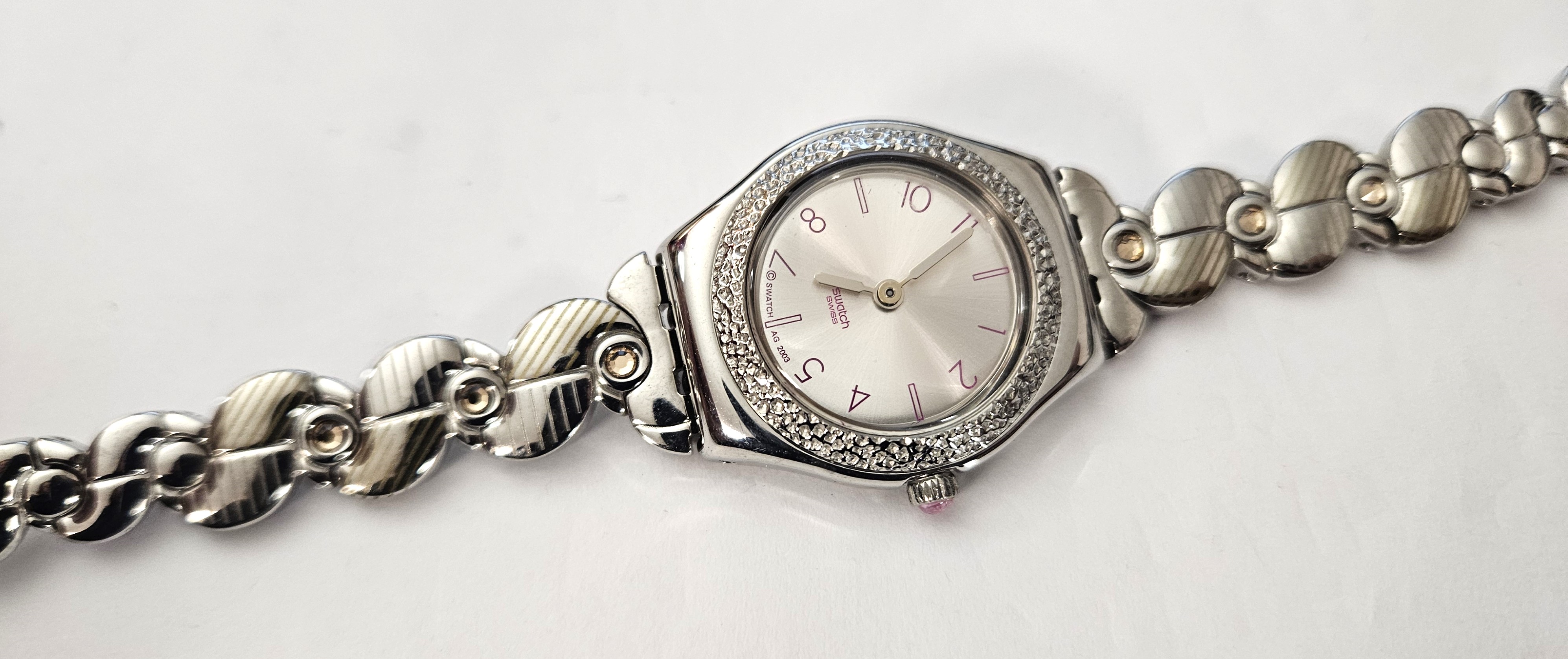 Swatch Irony Lady Lady 2003 - YSS153 - Purple Appetizer - NUOVO - perfettamente funzionante nella sua custodia originale - Display analogico - Resistente all'acqua fino a 3 bar - Tipo di movimento Quarzo Svizzero - diametro cassa 25 mm .