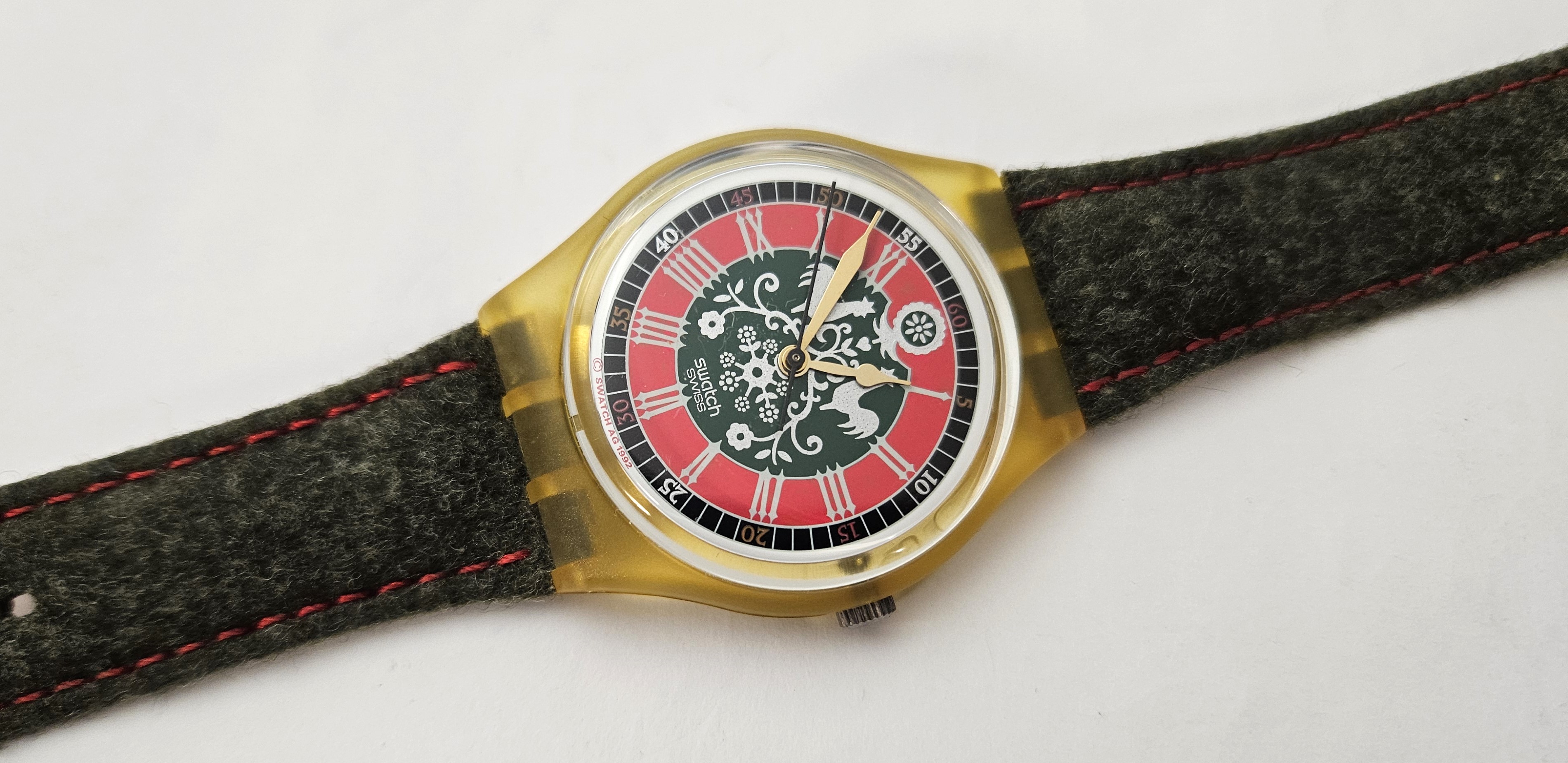 Swatch Standards 1993 - GK167 - Loden - Nuovo - perfettamente funzionante nella sua custodia originale - Display analogico - Resistente all'acqua fino a 3 Bar - Tipo di movimento Quarzo Svizzero - cassa in plastica e cinturino in pelle - diametro cassa 34 mm -