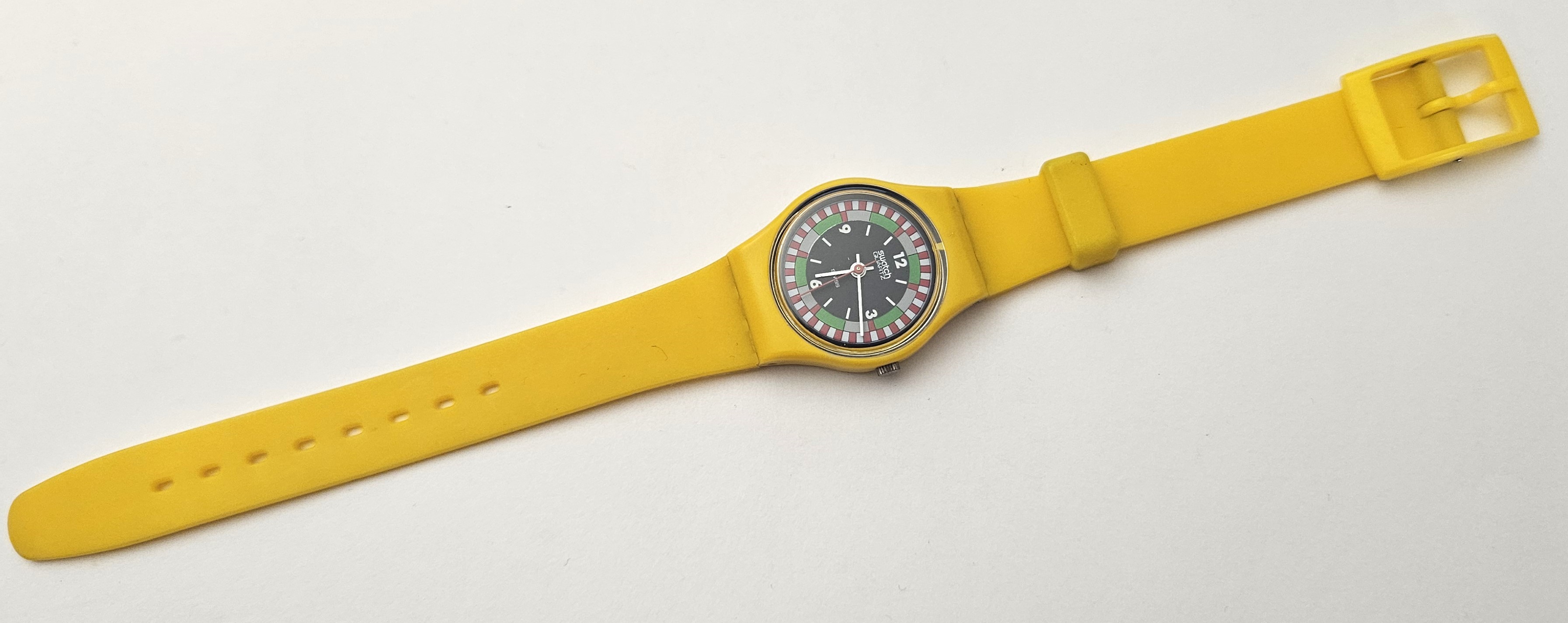 Swatch Standards LADY 1984 - LJ100 - Yellow Racer - Lady - Leggermente usato - perfettamente funzionante nella sua custodia originale - Display analogico - Resistente all'acqua fino a 3 Bar - Tipo di movimento Quarzo Svizzero - Cassa e Cinturino in Plastica