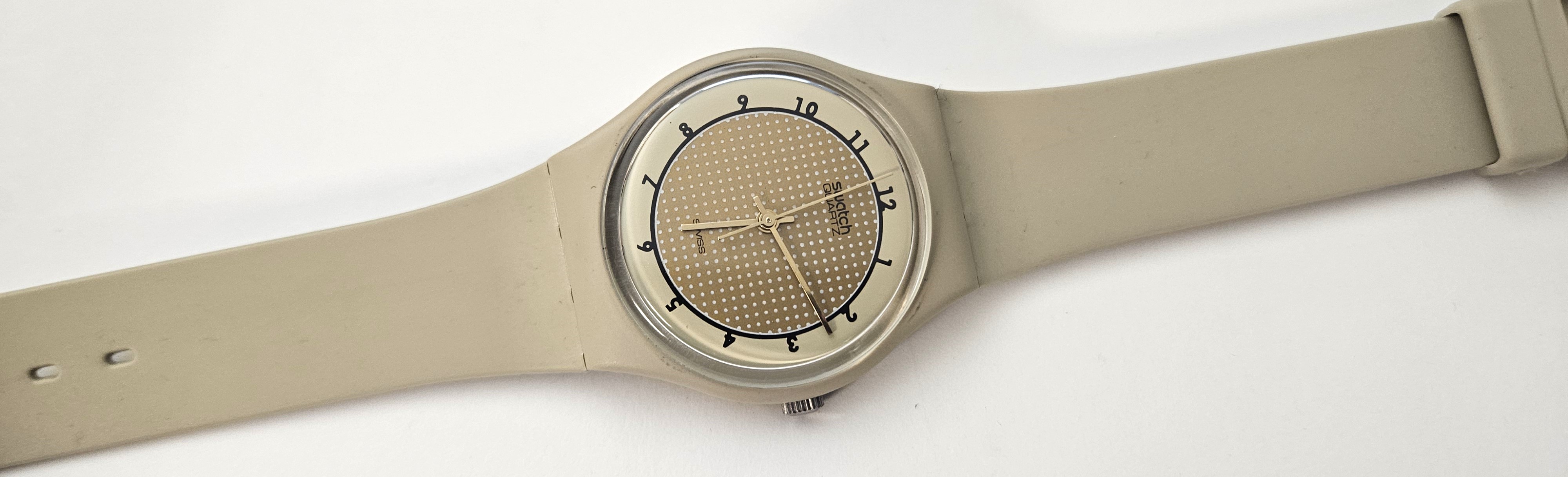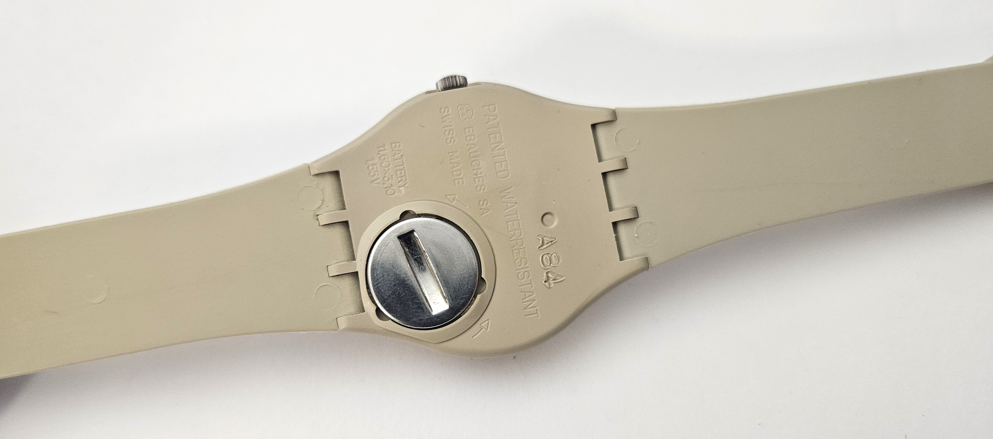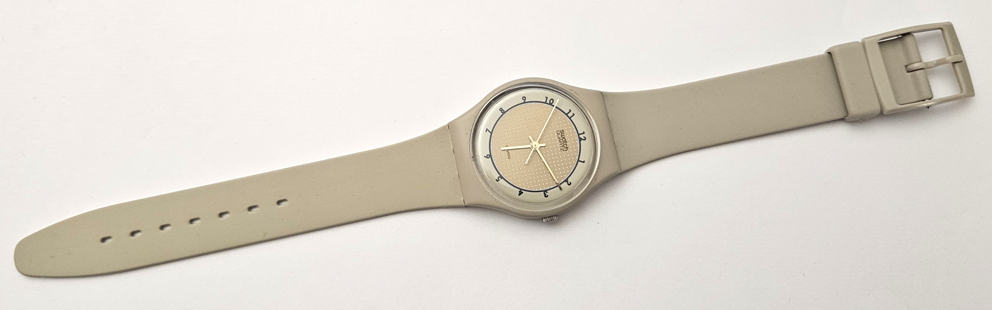 Swatch Standards 1984 - GT103 - Golden Tan - Nuovo - Cinturino 7 Buchi - perfettamente funzionante nella sua custodia originale - Display analogico - Resistente all'acqua fino a 3 bar - Tipo di movimento Quarzo Svizzero