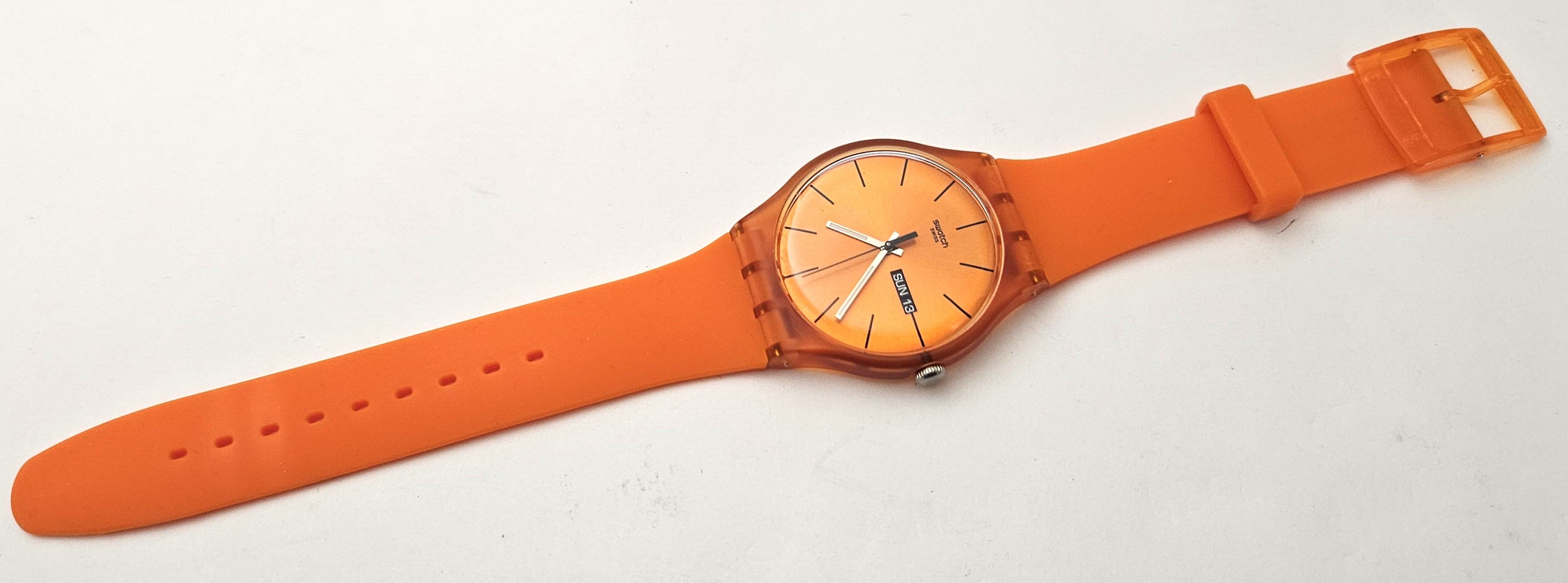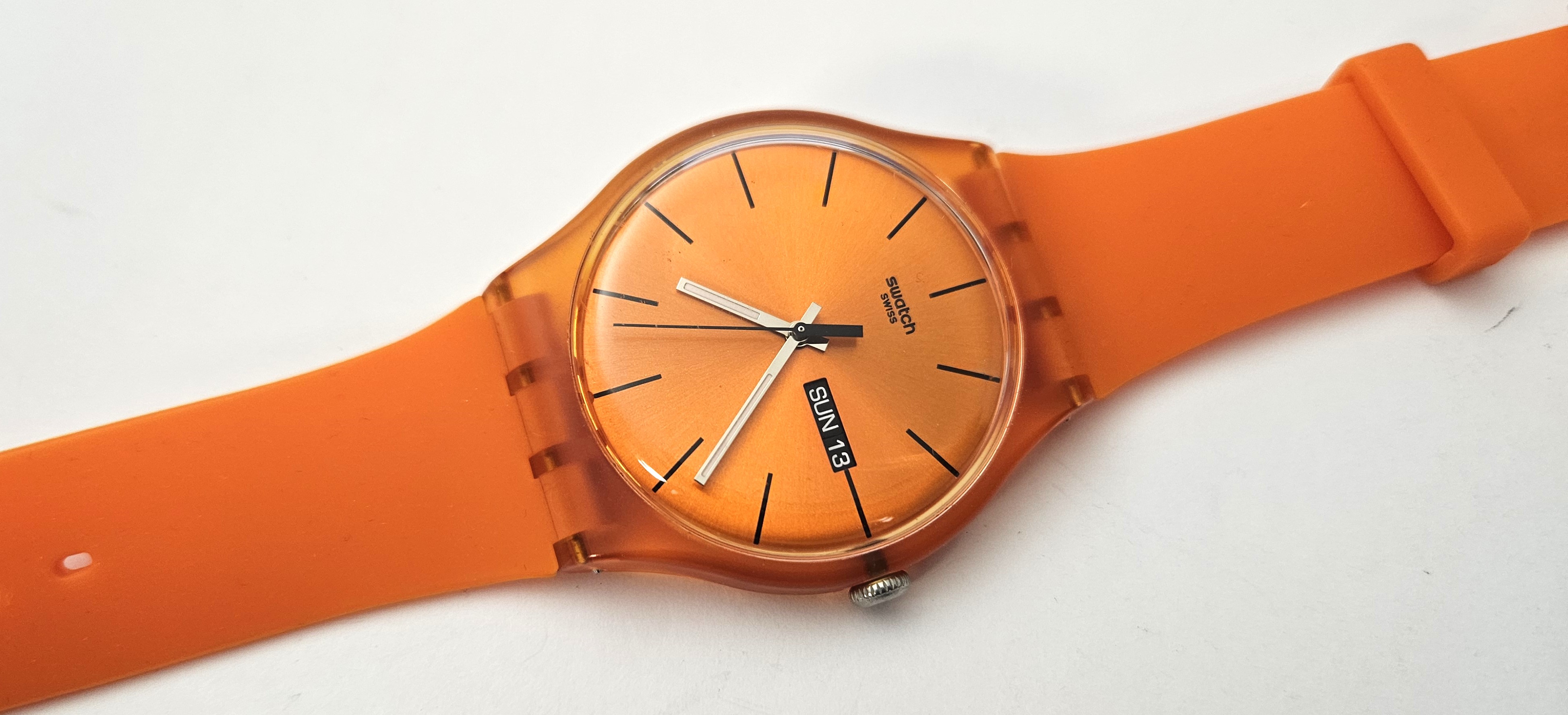 Swatch New Gent 2012 - SUOO700 - Pumpkin Rebel - Leggermente usato - perfettamente funzionante senza la custodia originale e garanzia - Display analogico - Resistente all'acqua fino a 3 bar - Tipo di movimento Quarzo Svizzero - diametro cassa 41 mm -