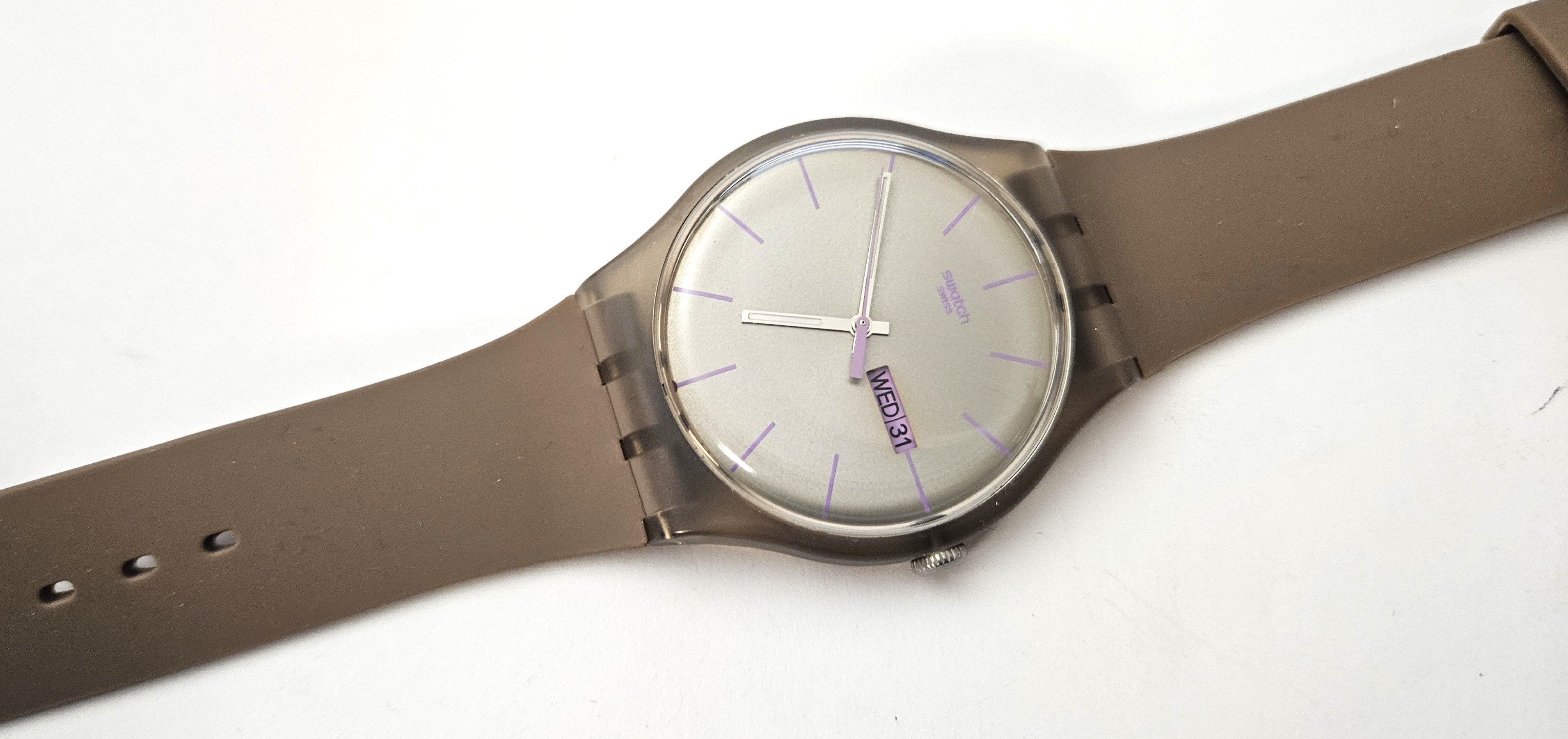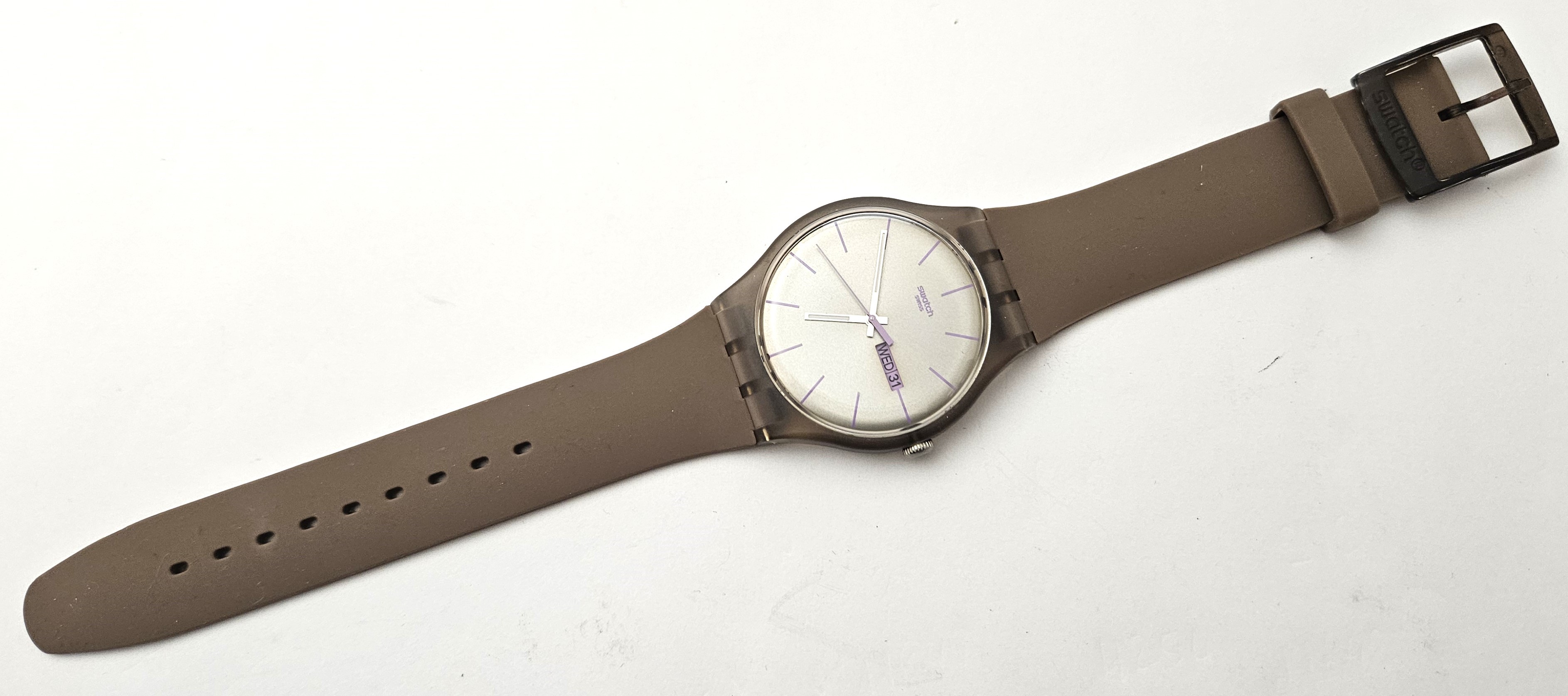 Swatch New Gent - SUOC702 - Taupe Rebel - Leggermente Usato - perfettamente funzionante SENZA custodia originale - Display analogico - Resistente all'acqua fino a 3 bar - Tipo di movimento Quarzo Svizzero - diametro cassa 41 mm -