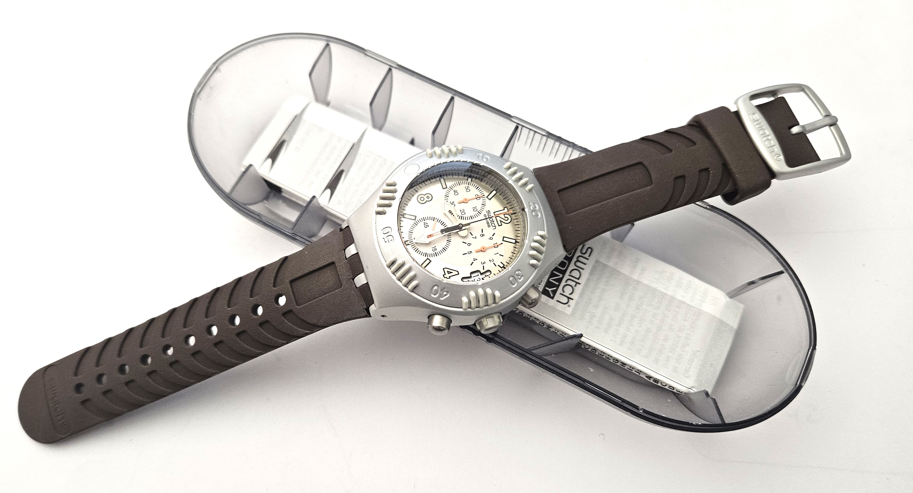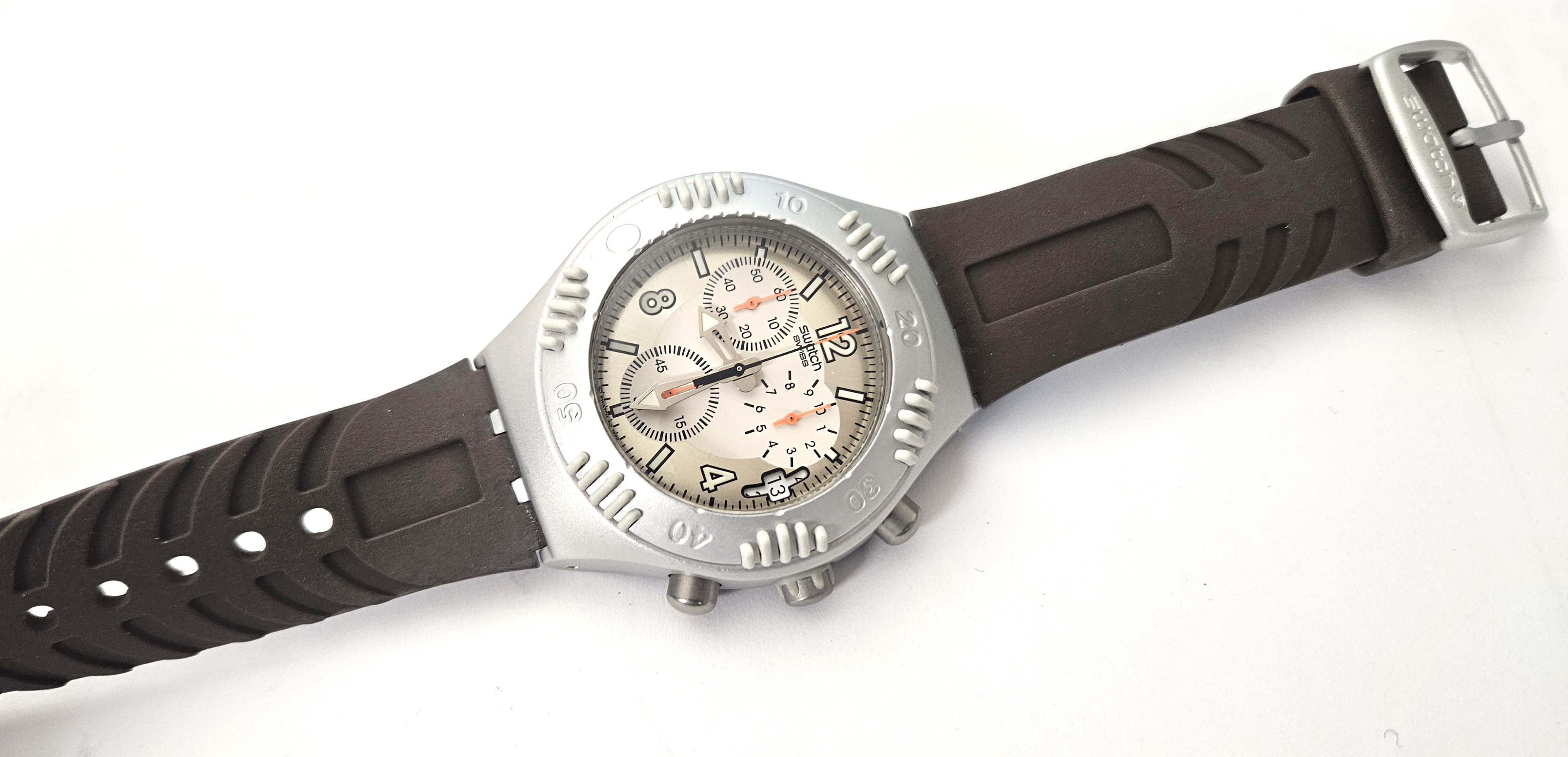 Swatch Irony Scuba chrono 2001 - YBS4001 - Cherguy - NUOVO con difetto - perfettamente funzionante nella sua custodia originale - diametro cassa 46,2 mm - il cronografo NON funziona correttamente - Display analogico - Resistente all'acqua fino a 20 bar - Tipo di movimento Quarzo Svizzero