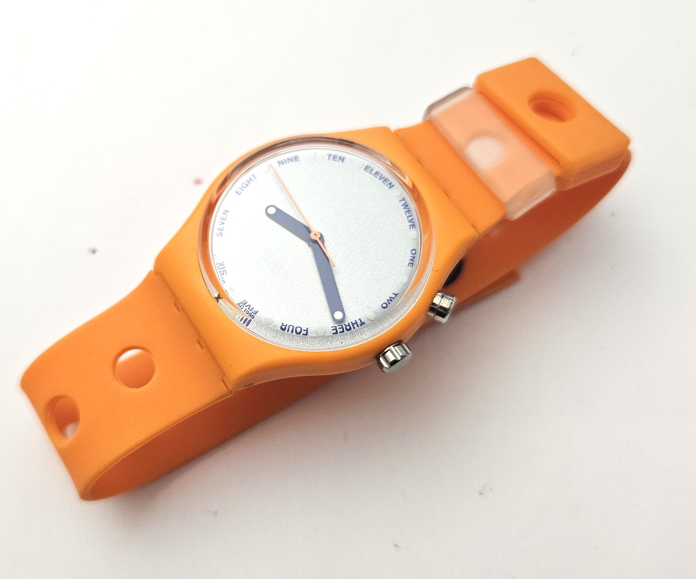 Swatch Standard Loomi 2000 - GO900 - Orange Ticket - NUOVO - perfettamente funzionante nella custodia originale - Display analogico - Resistente all'acqua fino a 3 bar - Tipo di movimento Quarzo Svizzero - Cassa e Cinturino in Plastica