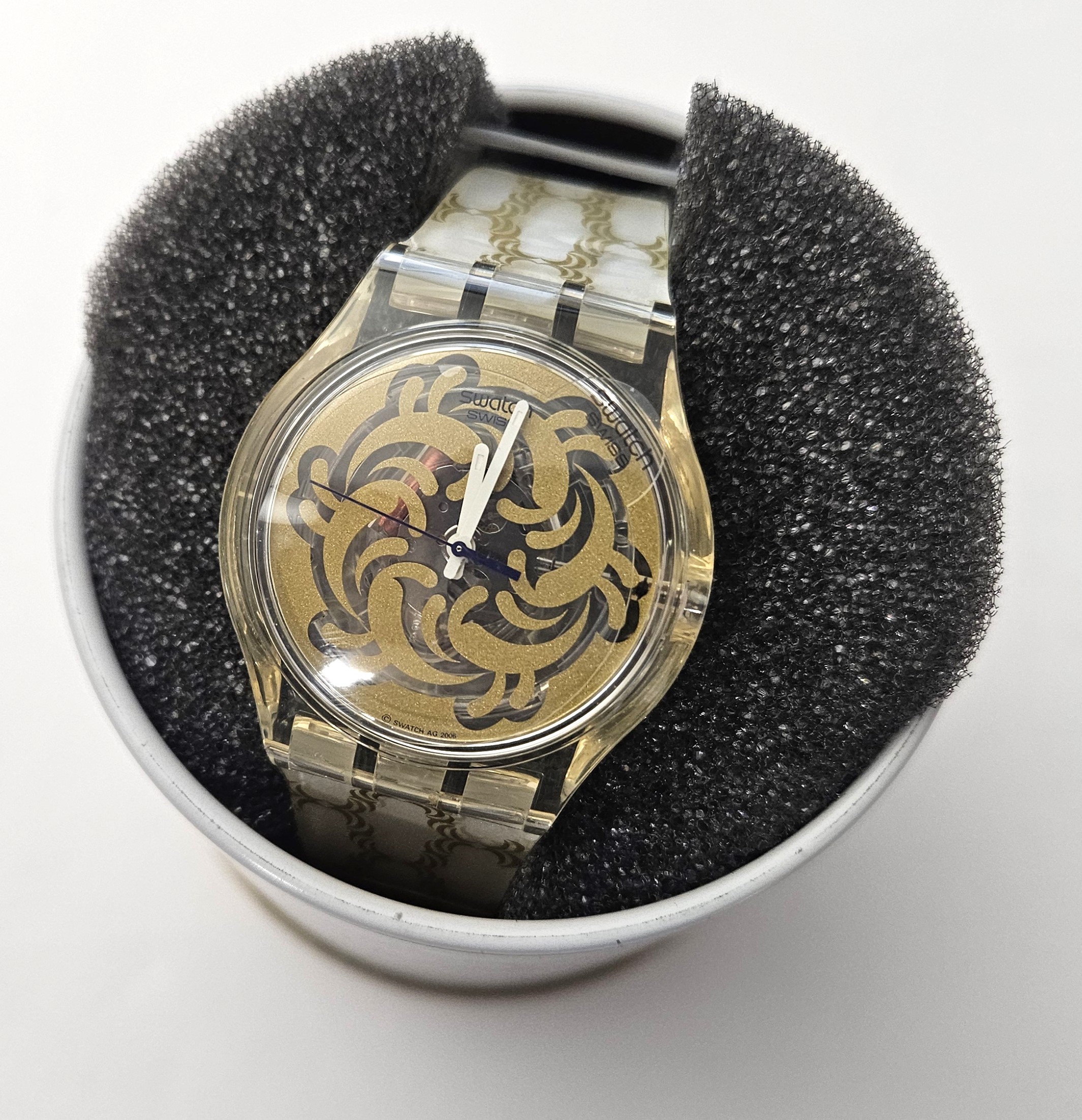 Swatch Special 2008 - SUJK116PACK - Gold & Pioneer 2008 - Dornbirin (Sultan's Joy) - NUOVO - perfettamente funzionante nella sua custodia originale - Display analogico - Resistente all'acqua fino a 3 bar - Tipo di movimento Quarzo Svizzero - Cassa e Cinturino in Plastica
