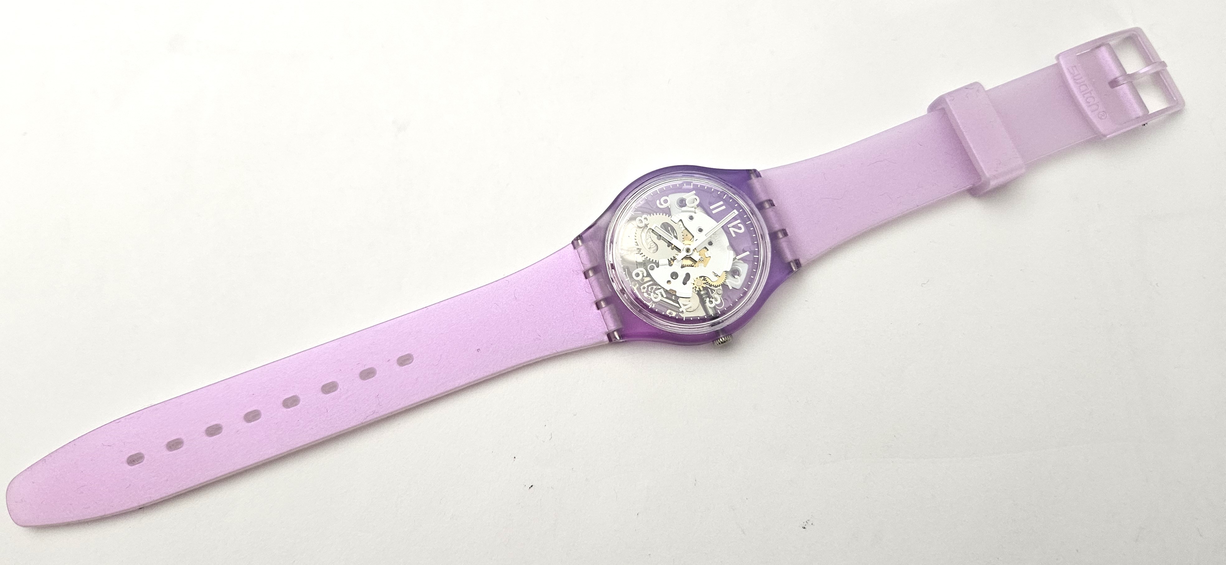 Swatch Standards 2014 - GV136 - Tramonto viola - Nuovo - perfettamente funzionante nella sua custodia originale - diametro cassa 34mm - Display analogico - Resistente all'acqua fino a 3 Bar - Tipo di movimento Quarzo Svizzero - cinturino in silicone -