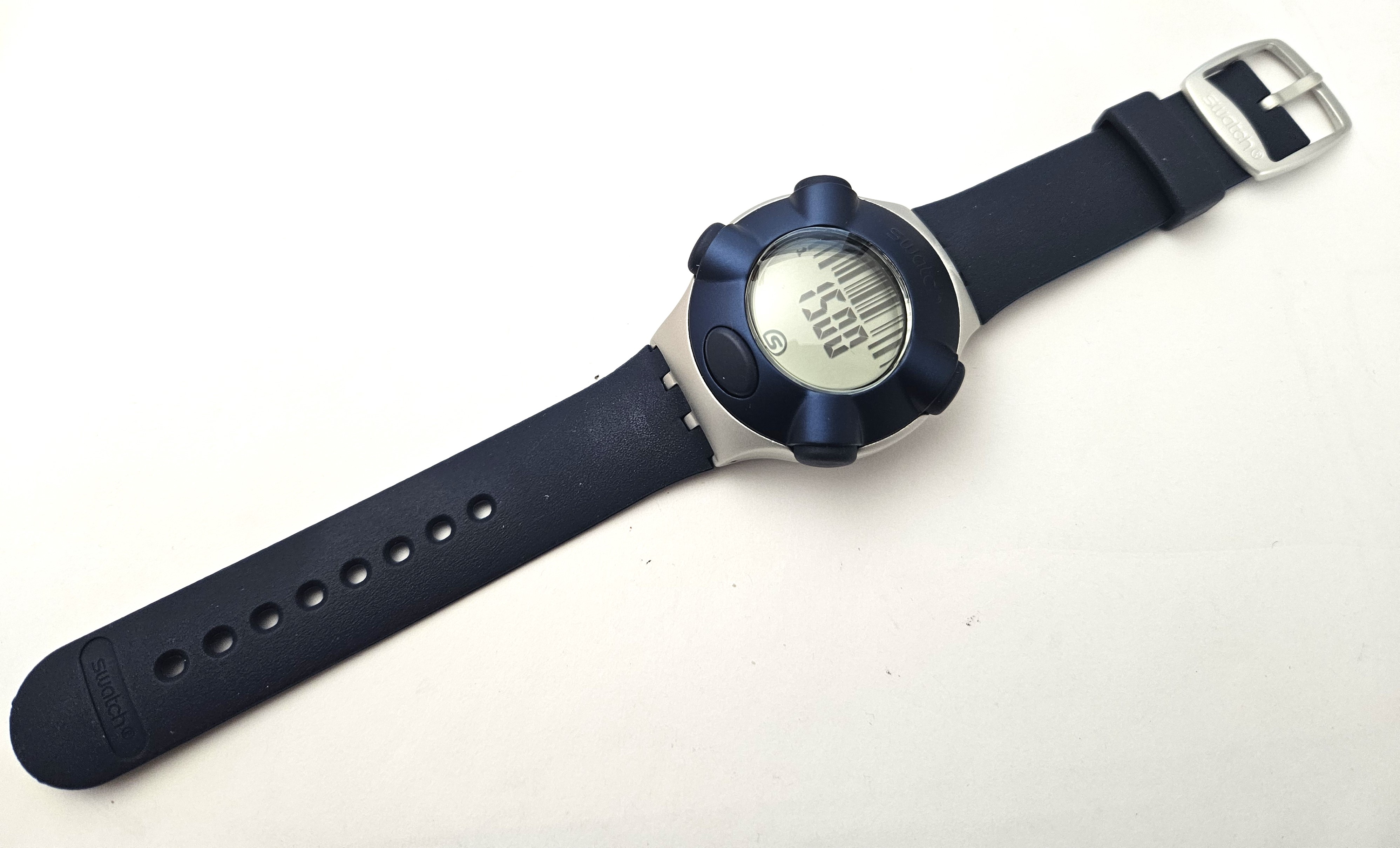 Swatch Irony Synchro Beat 2001- YKS8000 - Synchro Beat - NUOVO - perfettamente funzionante nella sua custodia originale - 2001 - Display analogico - Resistente all'acqua fino a 3 bar - Tipo di movimento Quarzo Svizzero - Cassa in alluminio e cinturino in gomma -