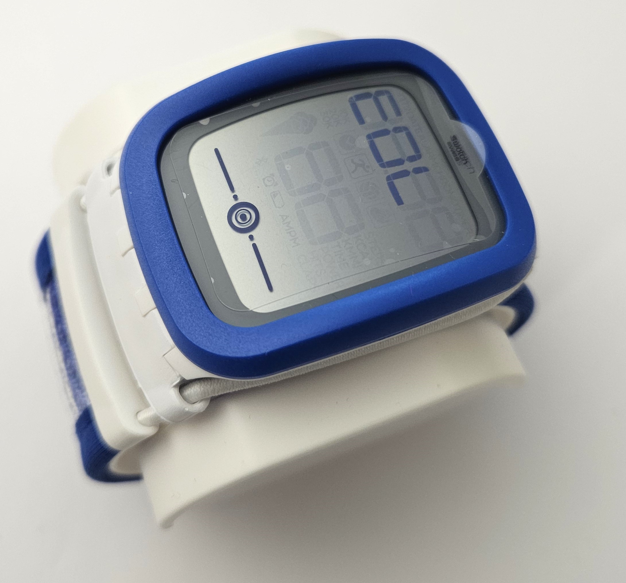 Swatch Touch Zero One 2015 - SUVW102B - Skyzero - NUOVO - Movimento 24 ore - Sveglia - Retroilluminazione - Cronografo - Data Digitale - Timer - 2 Fusi Orari - Contapassi - Applausometro - Beach Volley Tracker - Coach - Calorie - Bluetooth - Accelerometro - perfettamente funzionante nella sua custodia originale.