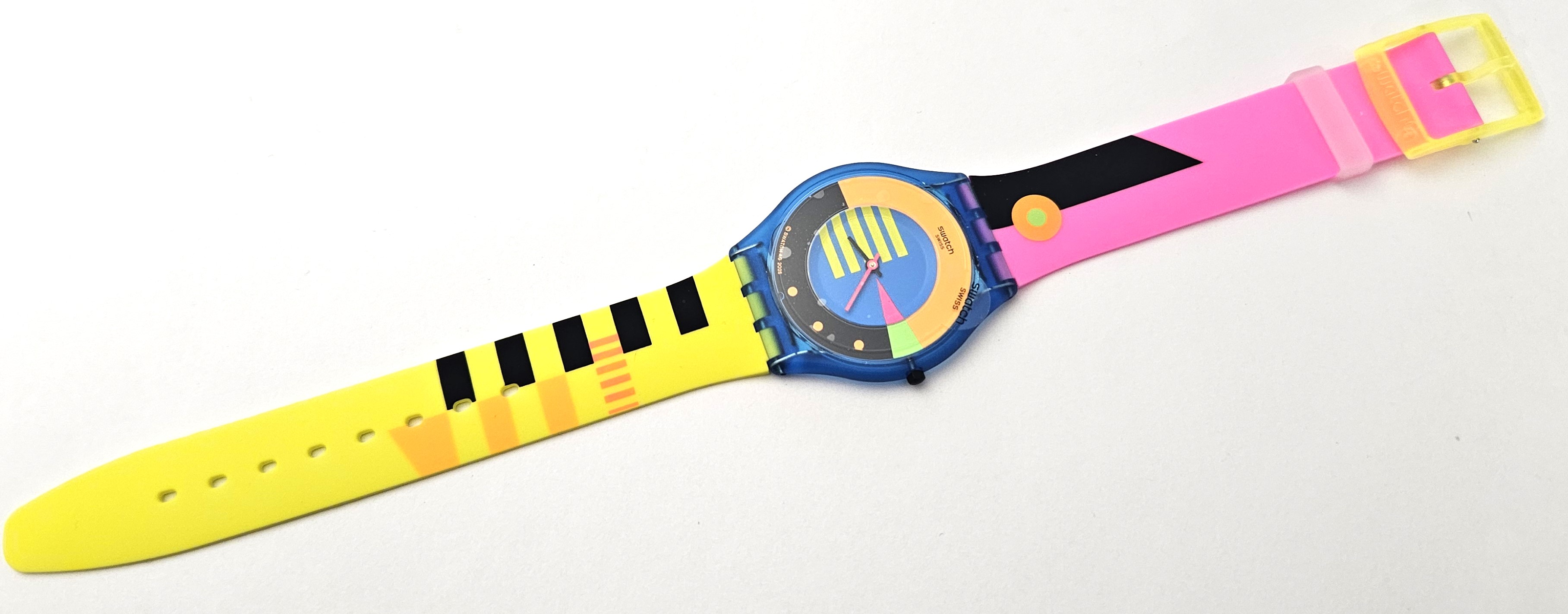 Swatch SKIN 2025 - SS08S101 - Neon Flumotion - Nuovo - perfettamente funzionante completo della sua custodia originale - Display analogico - Resistente all'acqua fino a 3 Bar - Tipo di movimento Quarzo Svizzero - Cassa in Plastica con diametro di 34 mm.-