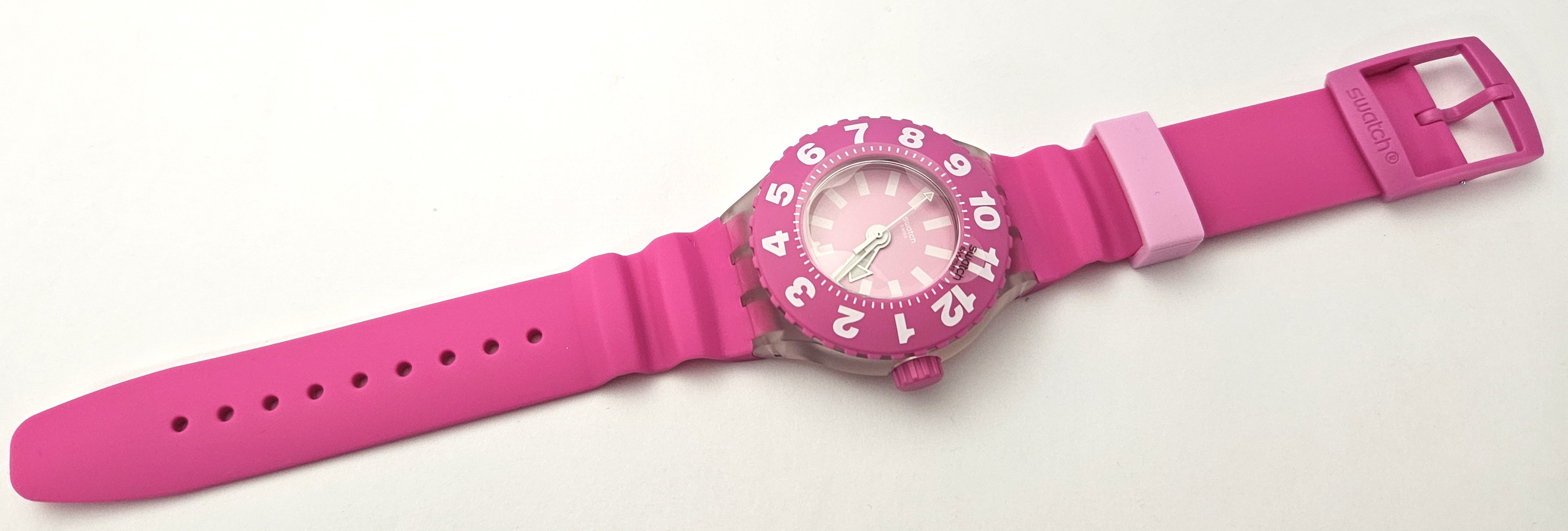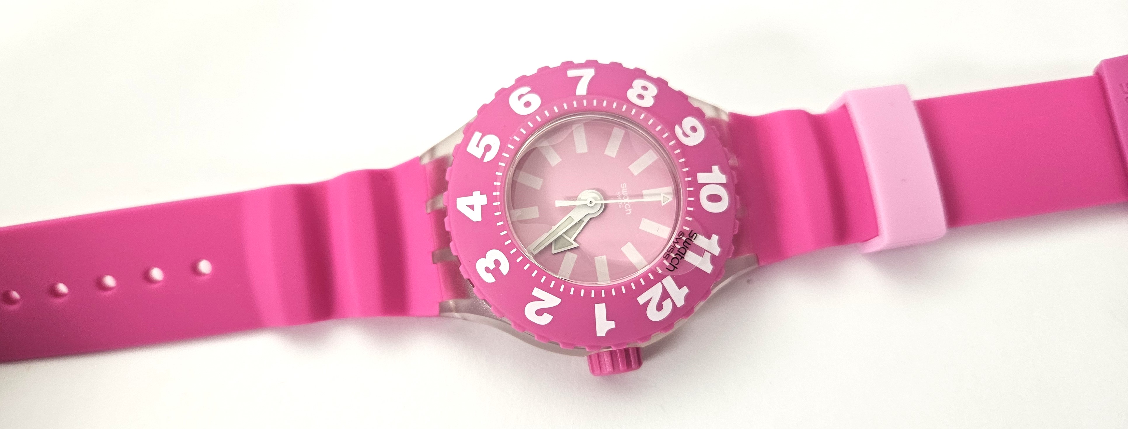 Swatch Scuba 2016 - SUUK113 - Die Rose - Nuovo - perfettamente funzionante nella sua custodia originale - Display analogico - Resistente all'acqua fino a 3 Bar - Tipo di movimento Quarzo Svizzero - Cassa in plastica e cinturino in gomma.