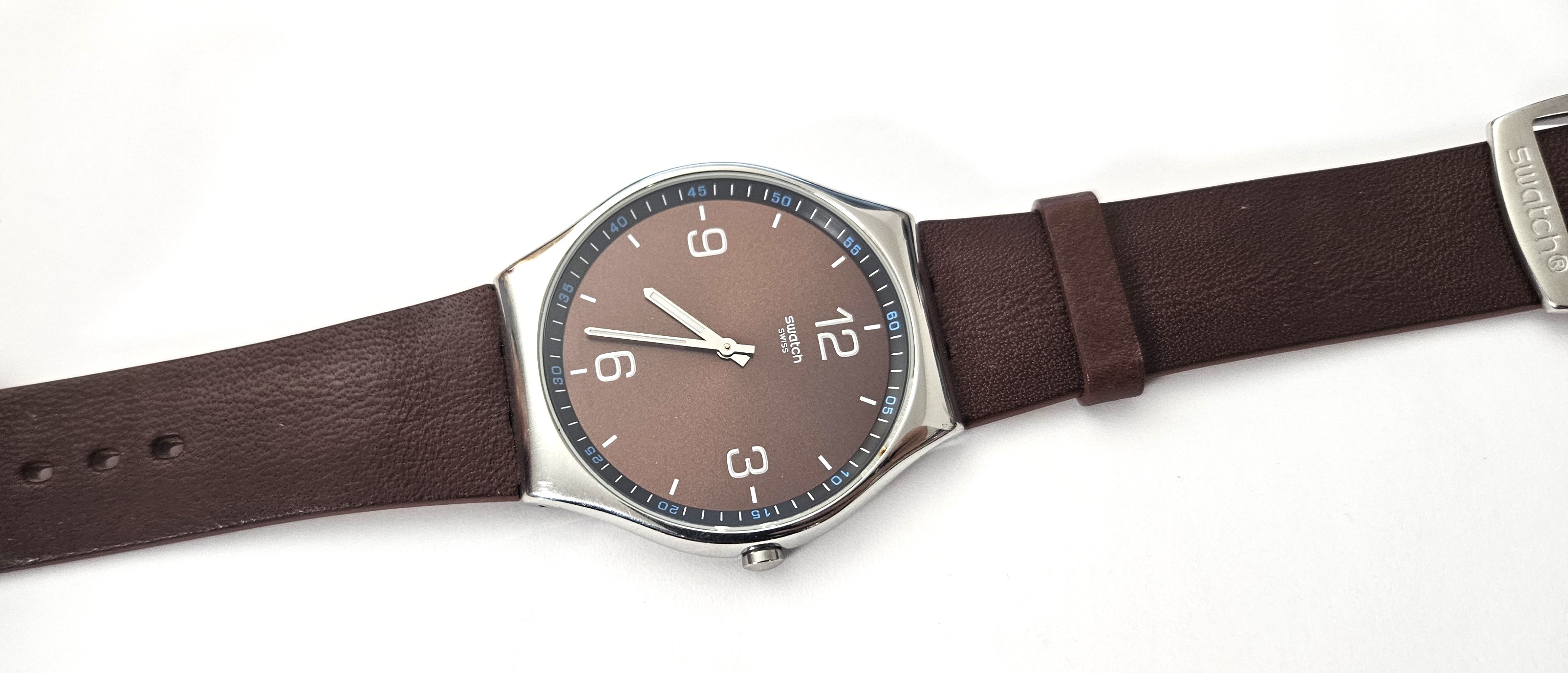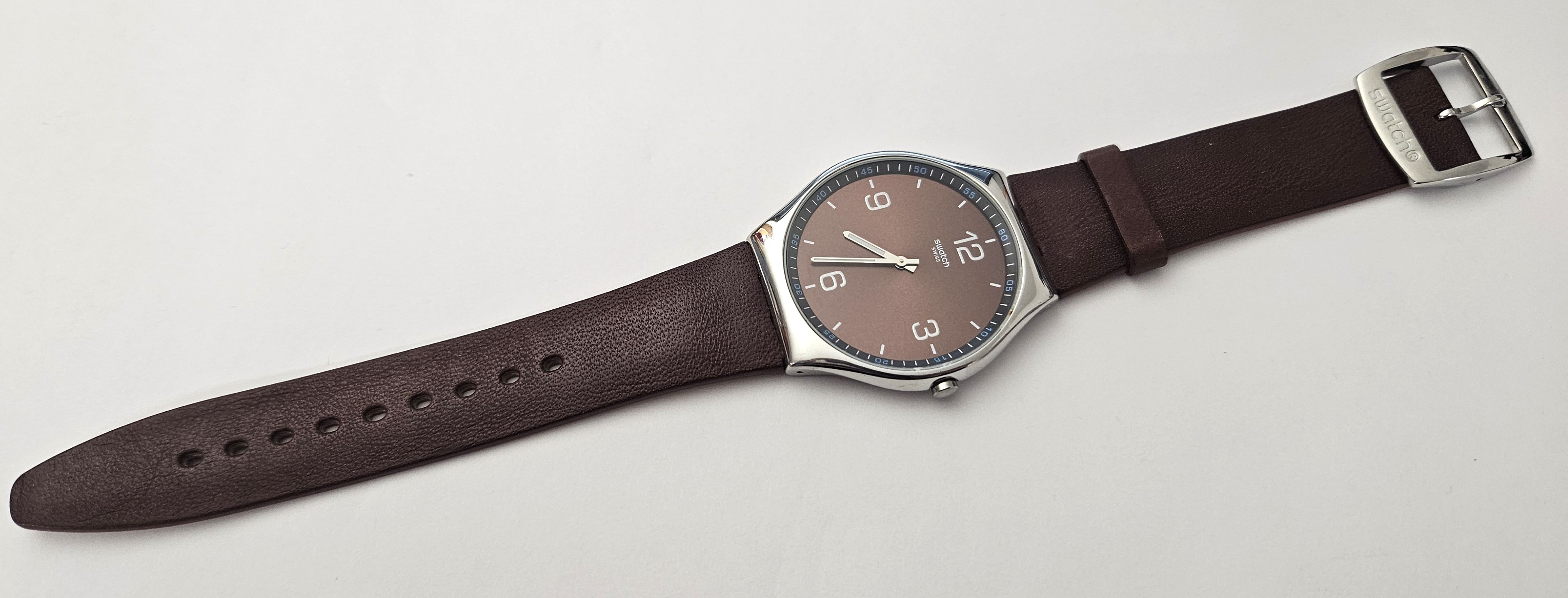 Swatch Irony Skin - SS07S107 - Skin Ristretto (cassa 42 mm) - Leggermente USATO - perfettamente funzionante - Display Analogico - Resistente all'acqua fino a 3 bar - Tipo di movimento Quarzo Svizzero - Senza scatola originale - cinturino in pelle nuovo -