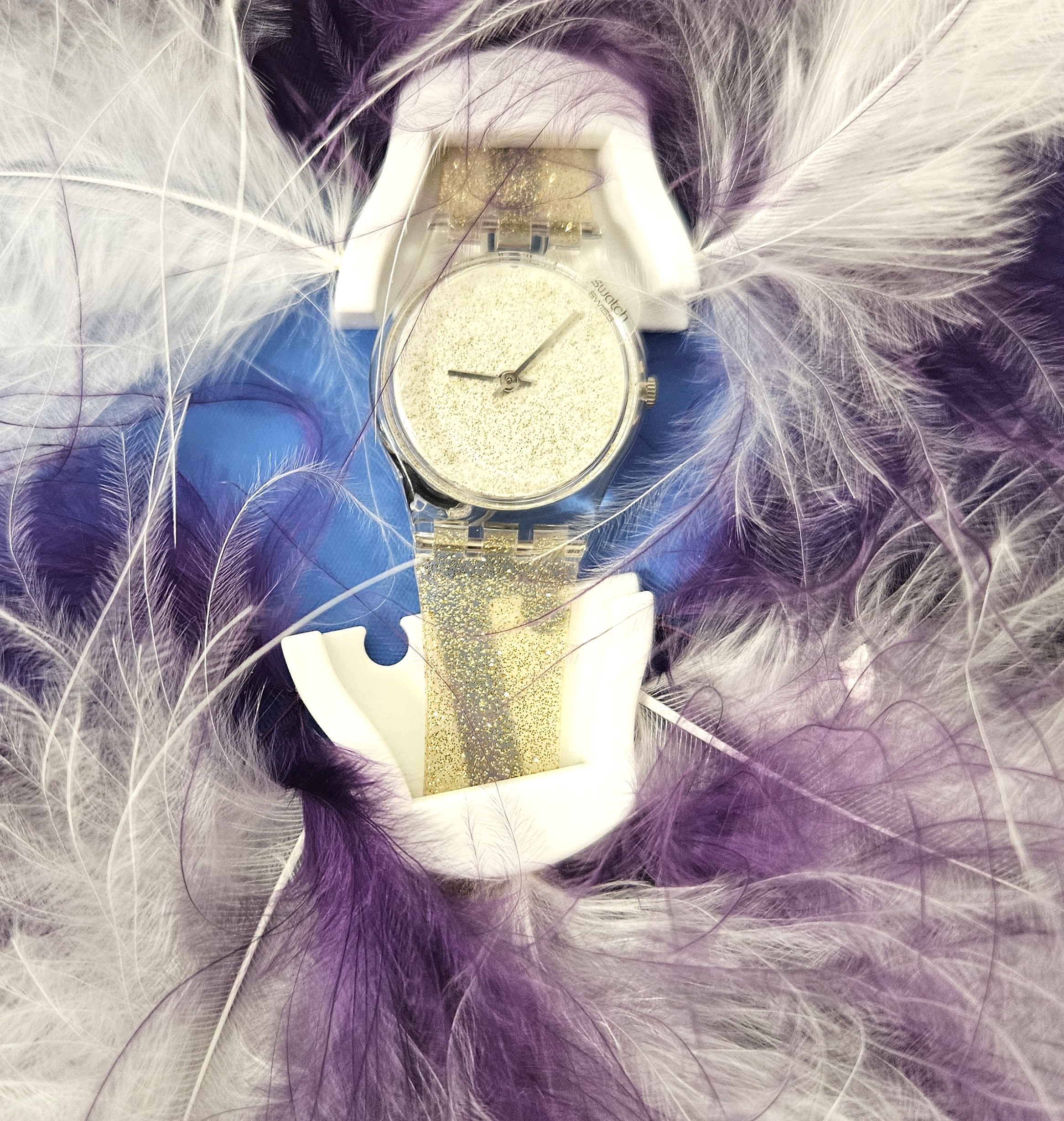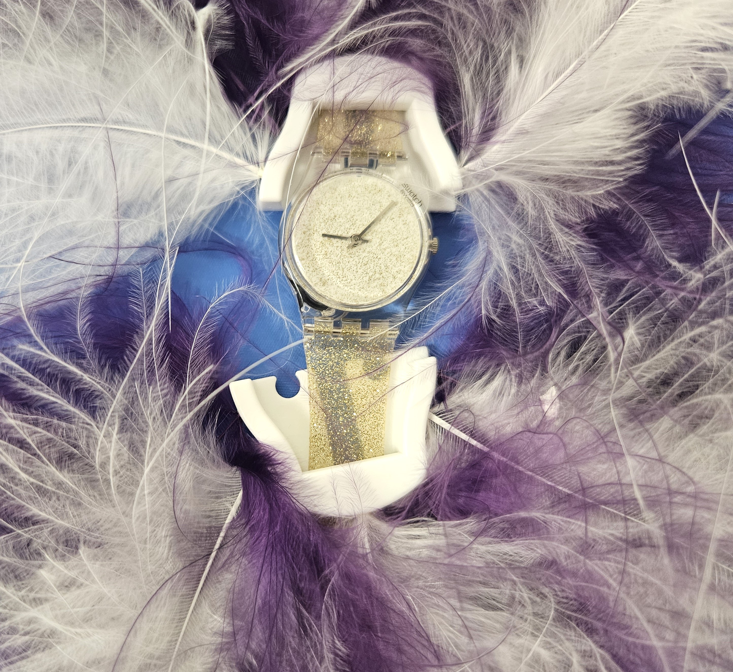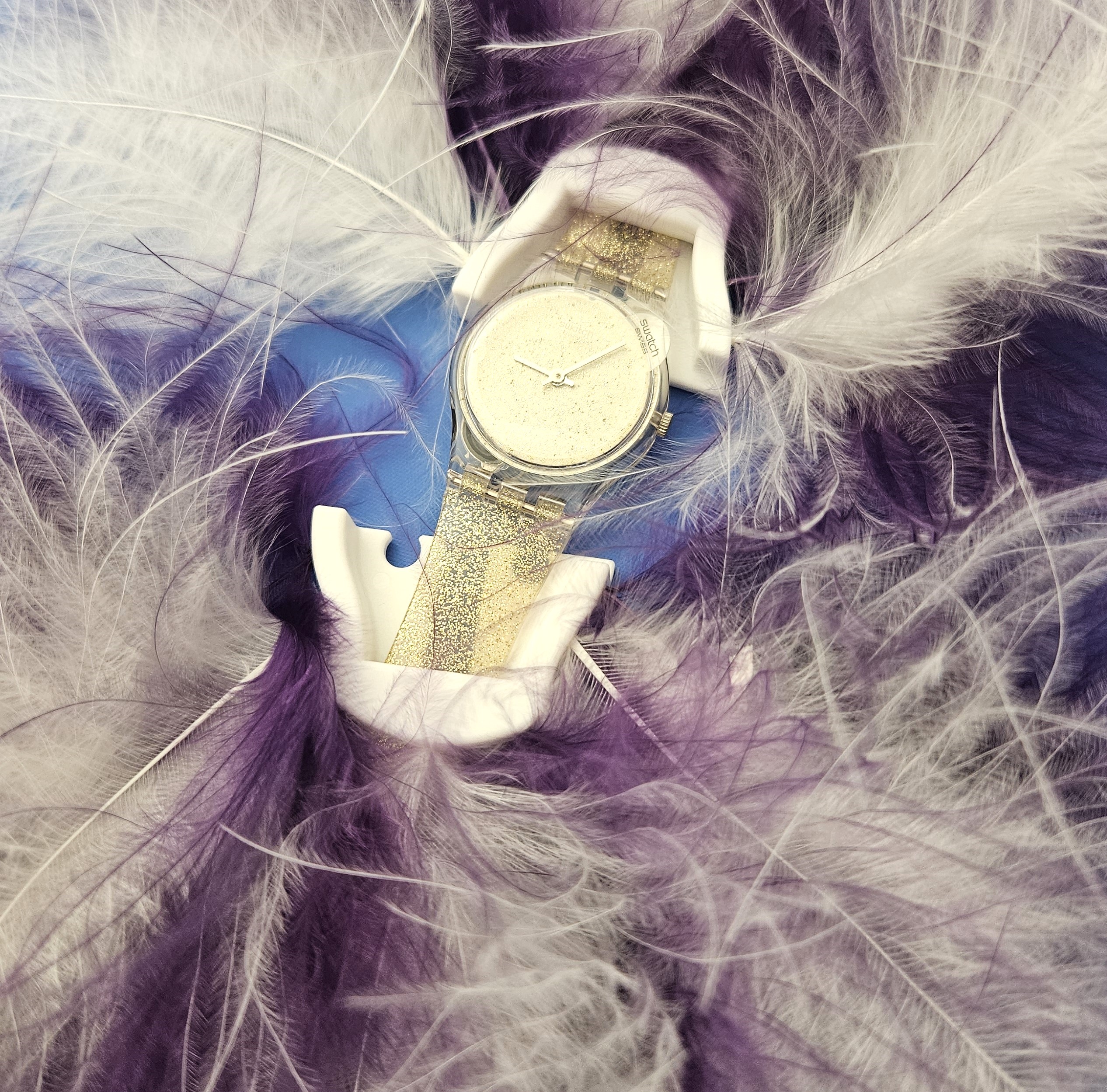 Swatch Special Glam Collection 2018 - LK387IPZ - Purple cancan - NUOVO -venduto esclusivamente in store selezionati a Amburgo, Parigi, Milano ecc. perfettamente funzionante nella custodia Speciale - Display analogico - Resistente all'acqua fino a 3 bar - Tipo di movimento Quarzo Svizzero -