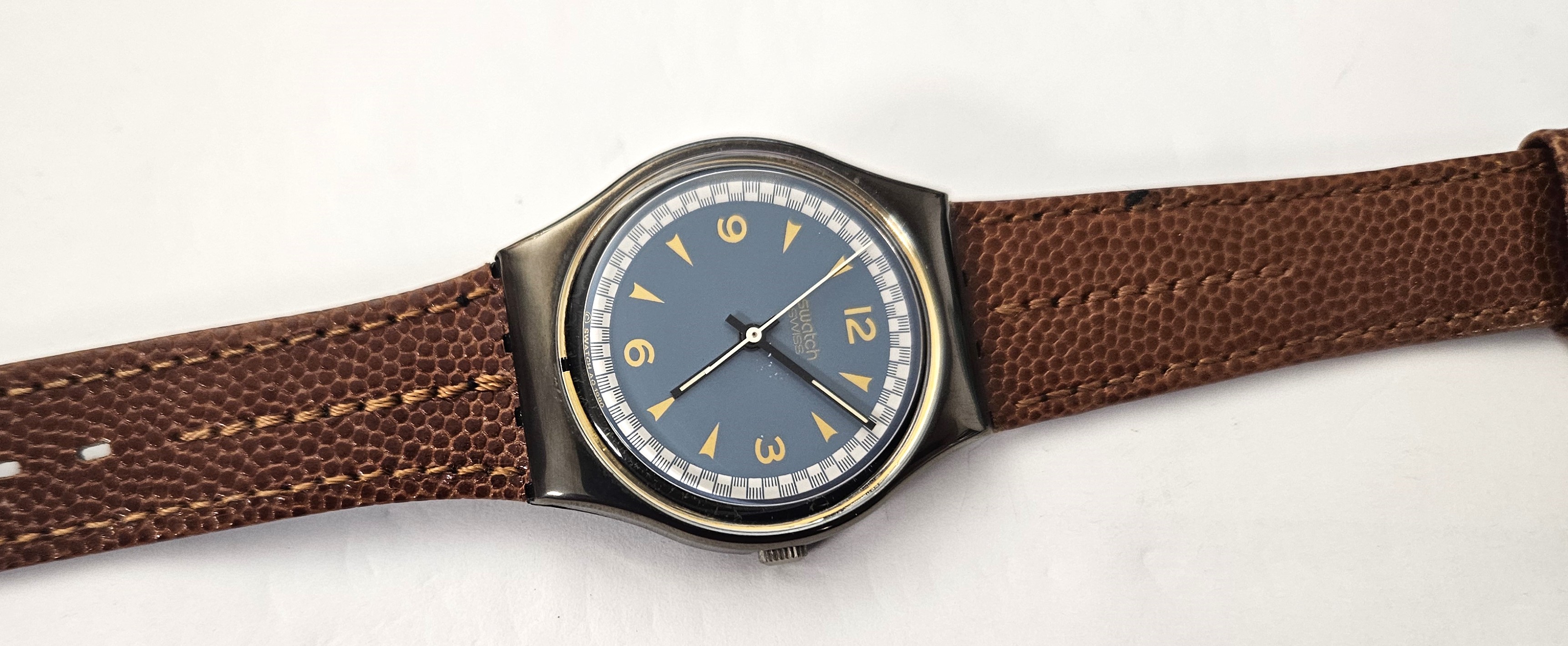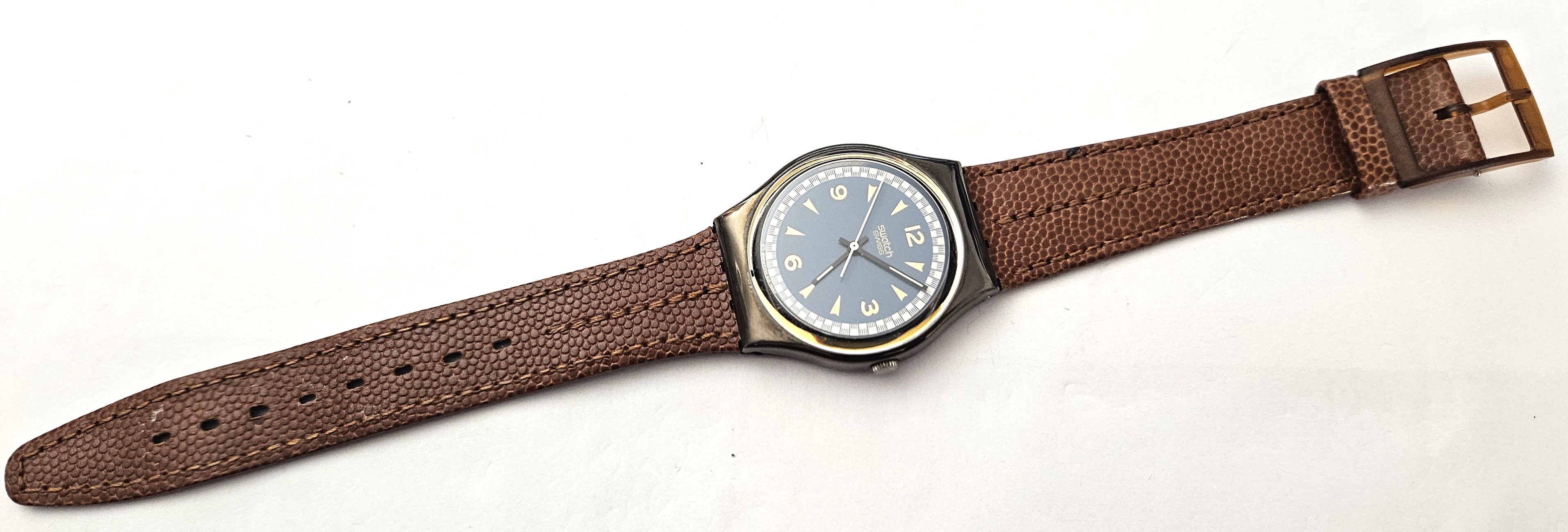 Swatch Standards -1990- GX117 - Ascot - Nuovo - perfettamente funzionante nella sua custodia originale - Display analogico - Resistente all'acqua fino a 3 Bar - Tipo di movimento Quarzo Svizzero - Cassa in Plastica e Cinturino in pelle-