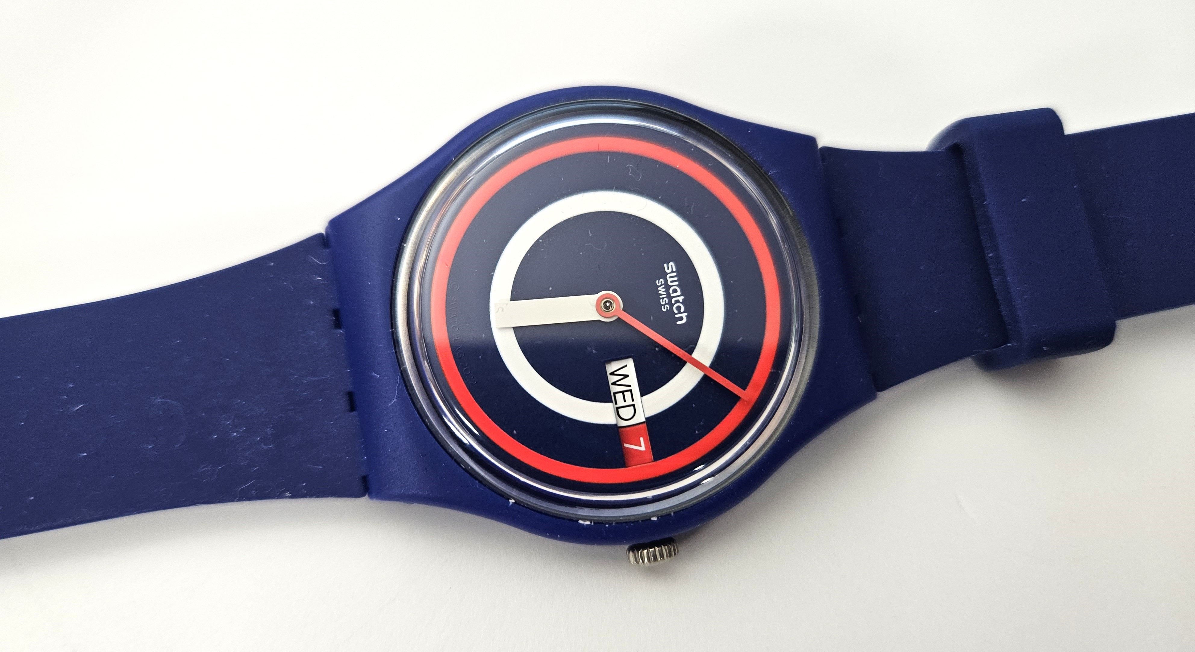 Swatch Gent Standards 2023 - SO28N703 - Blue to basics - NUOVO - perfettamente funzionante nella custodia originale - Display analogico - Resistente all'acqua fino a 3 bar - Tipo di movimento Quarzo Svizzero - cassa in plastica - diametro cassa 34 mm - -