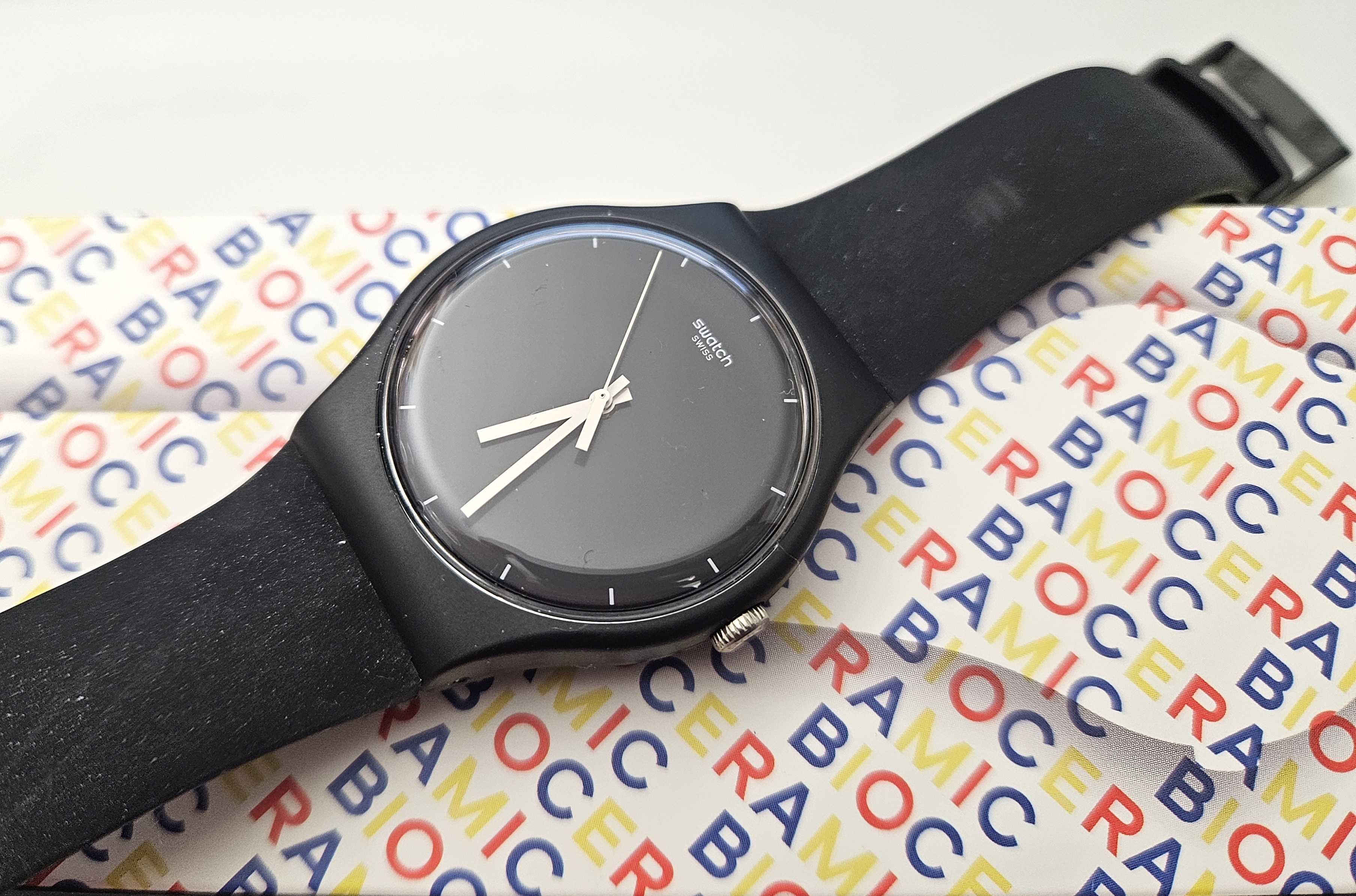 Swatch New Gent 2022 - SO32B106 - Think time black - Nuovo - perfettamente funzionante con la sua custodia originale e garanzia - Display analogico - Resistente all'acqua fino a 3 bar - Tipo di movimento Quarzo Svizzero - dm cassa 41 mm - cassa in bioceramica -
