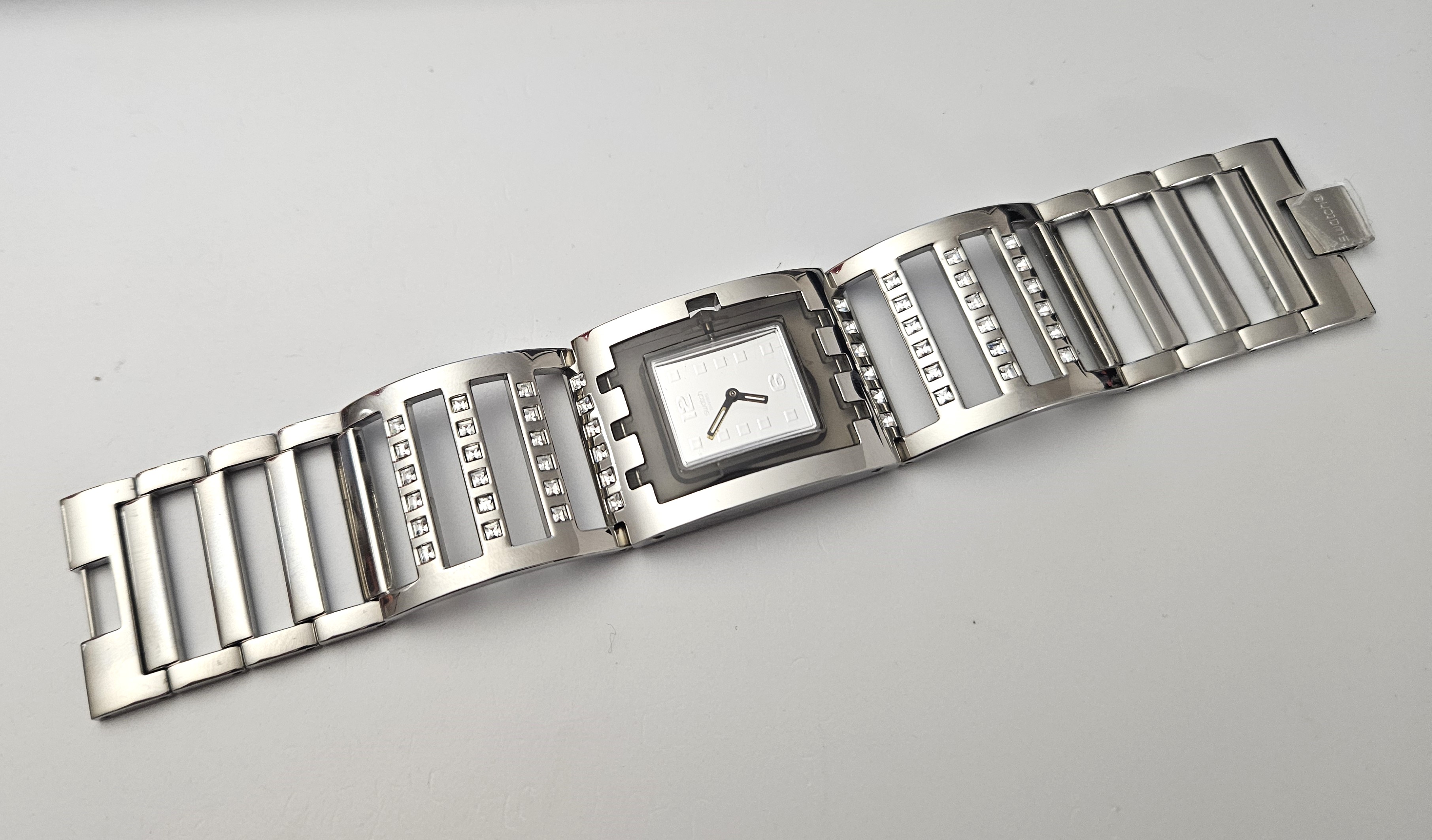Swatch Square 2010 - SUBM103G - Brilliant Bangle - Leggermente usato - perfettamente funzionante senza la sua custodia originale - Display Analogico - Resistente all'acqua fino a 3 bar - Tipo di movimento Quarzo Svizzero - cinturino nuovo originale -