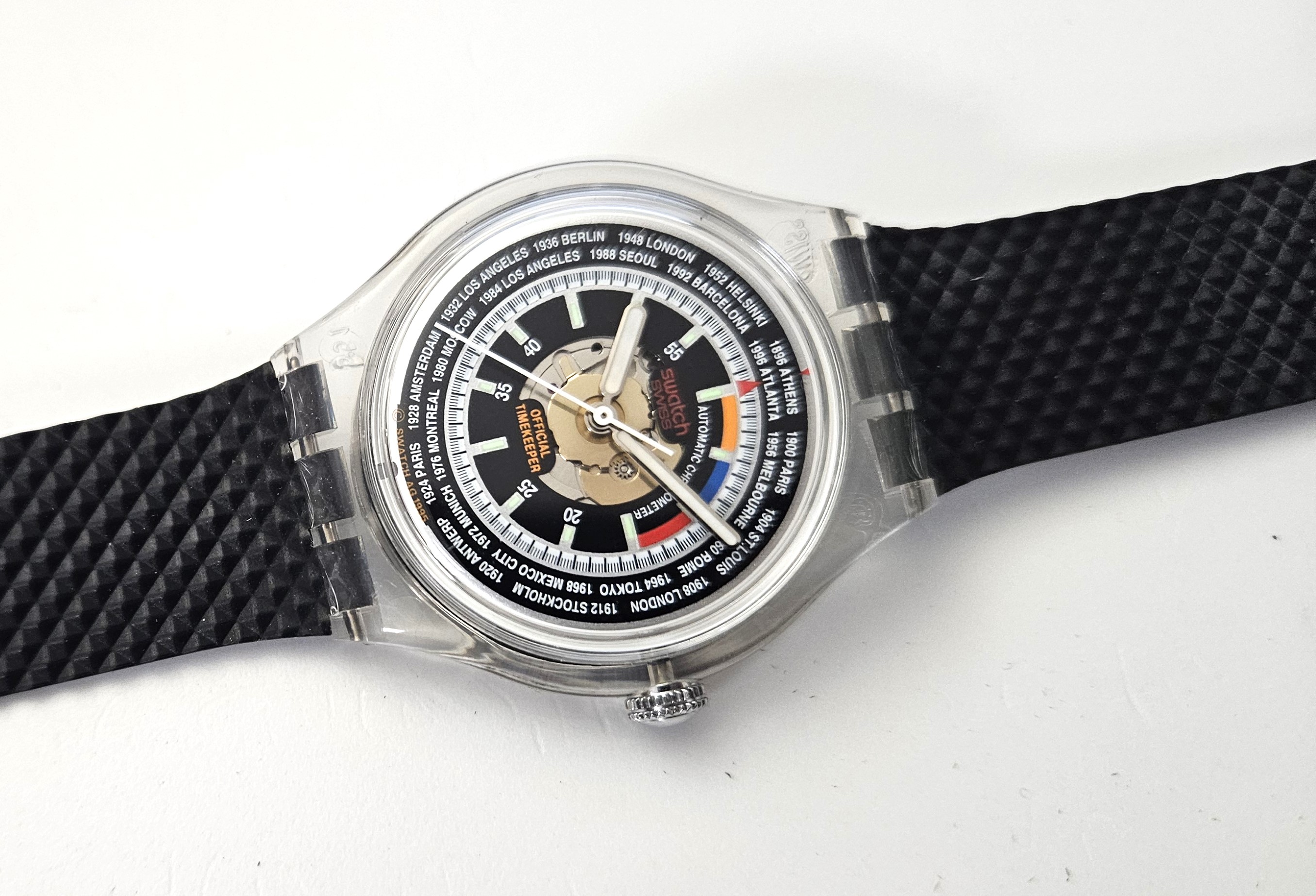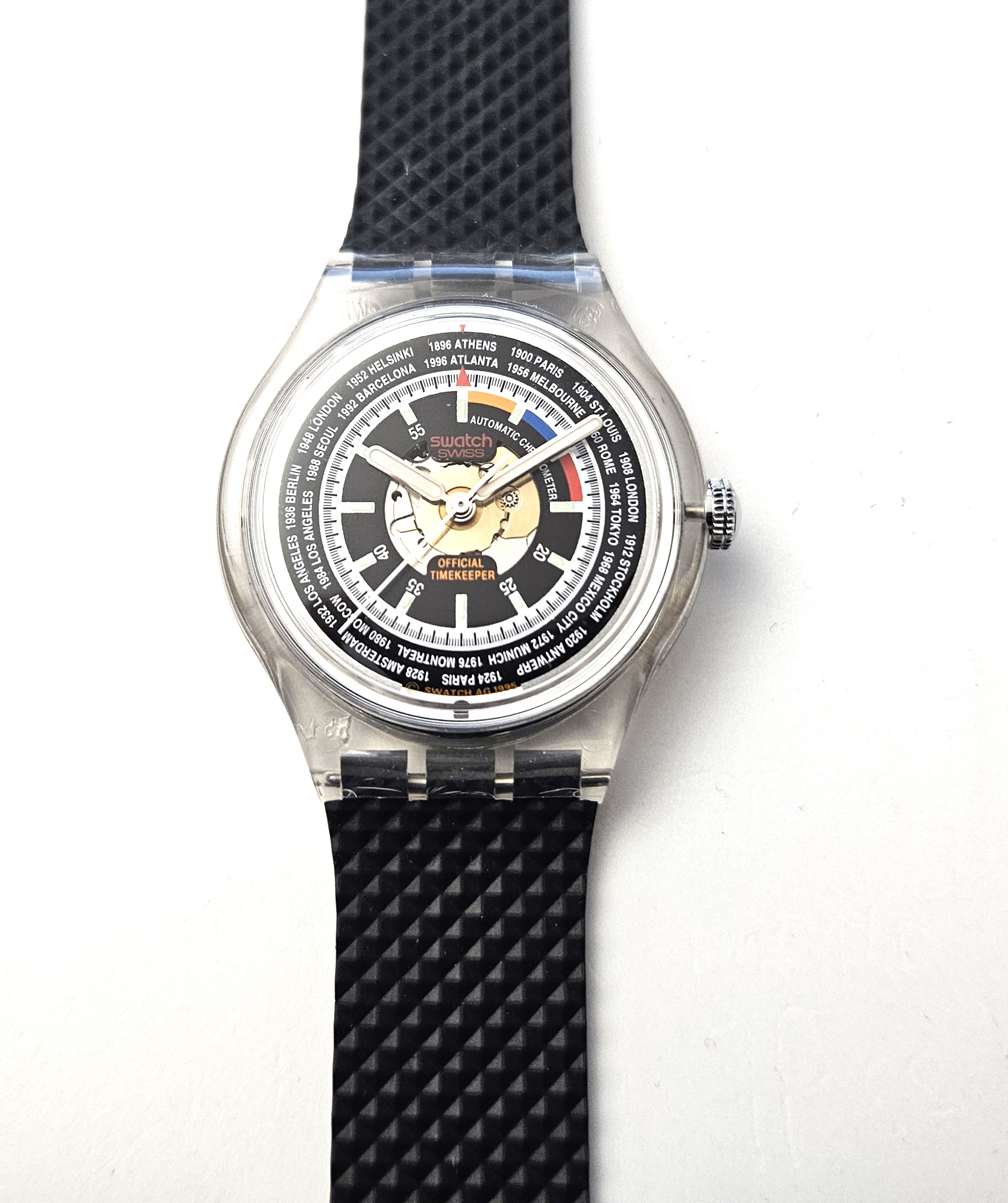 Swatch Dummy Automatico Olympic Special 1995 - SAZ105 - Perfect Timing - NUOVO - Quadrante commemorativo degli eventi olimpici - I dummy sono orologi NON funzionanti - Tipo di movimento automatico -