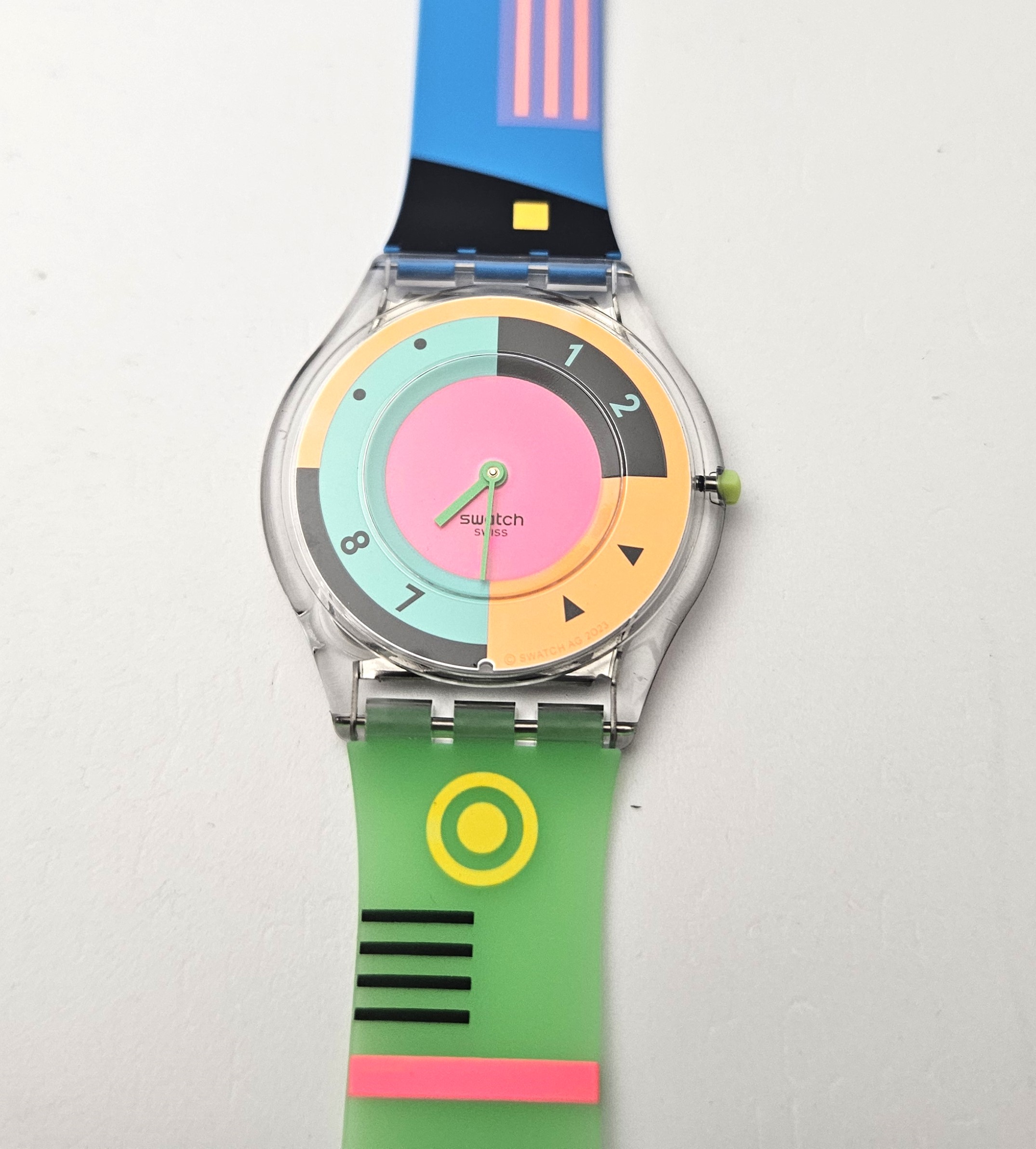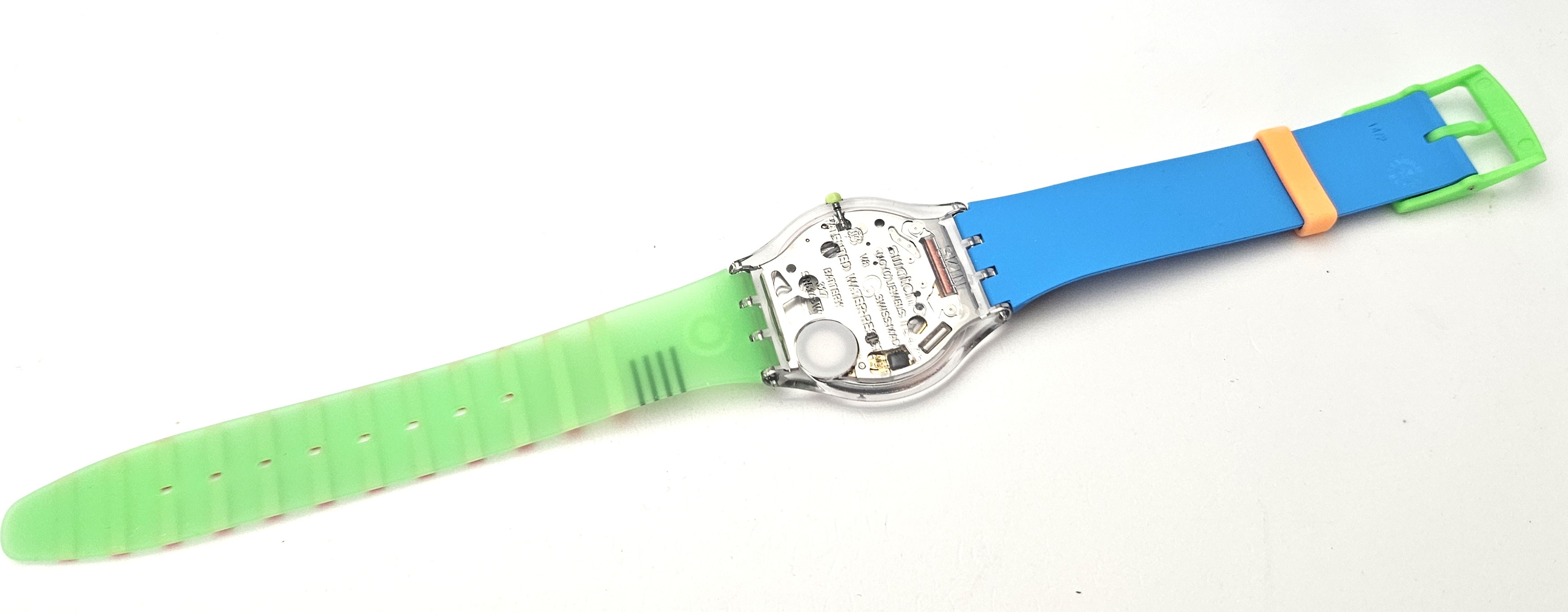 Swatch SKIN 2025 - SS08K119 - Neon Hot Racer - Nuovo - perfettamente funzionante completo della sua custodia originale - Display analogico - Resistente all'acqua fino a 3 Bar - Tipo di movimento Quarzo Svizzero - Cassa in Plastica con diametro di 34 mm.-