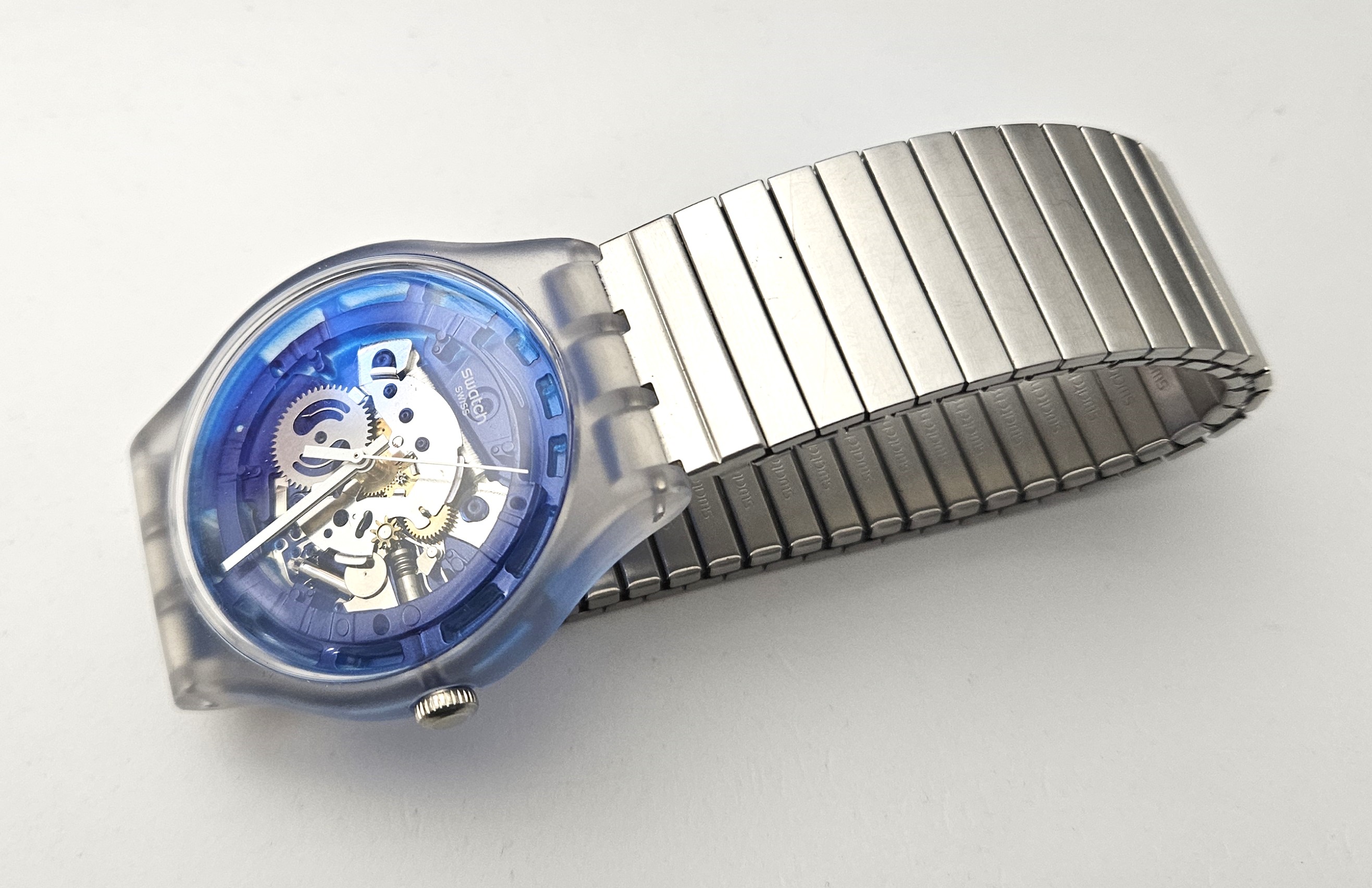 Swatch New gent 2016 - SUOK129 - Blumazing - Leggermente usato - diametro cassa 41 mm. perfettamente funzionante senza scatola originale e garanzia - Display analogico - Resistente all'acqua fino a 3 bar - Tipo di movimento Quarzo Svizzero - cassa in plastica -