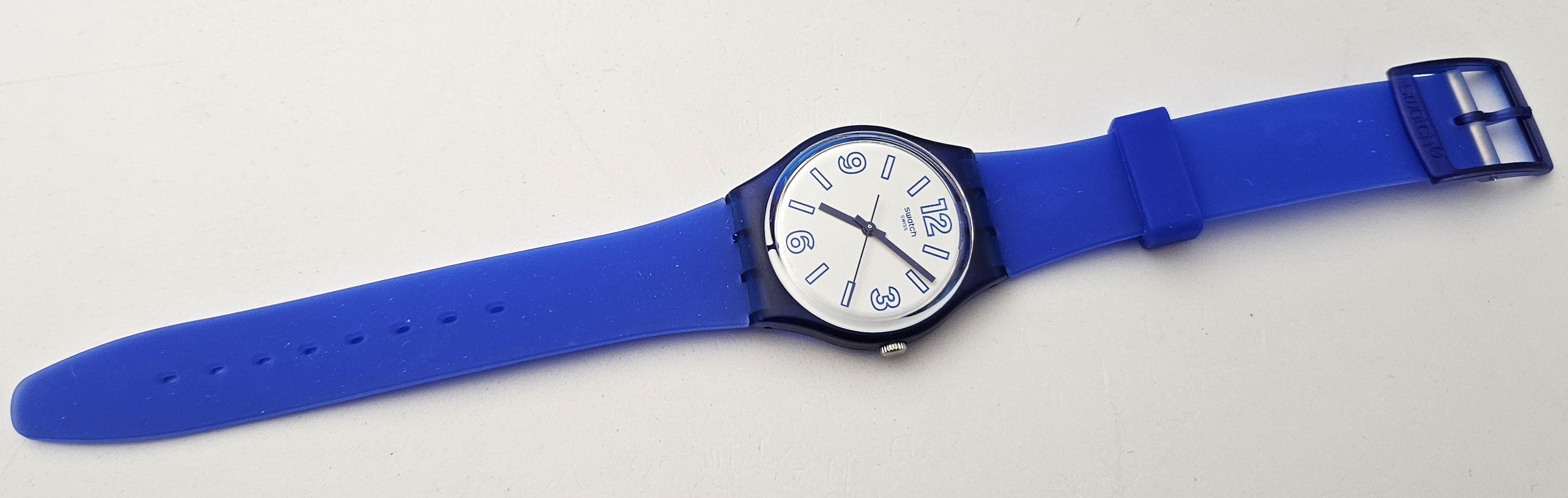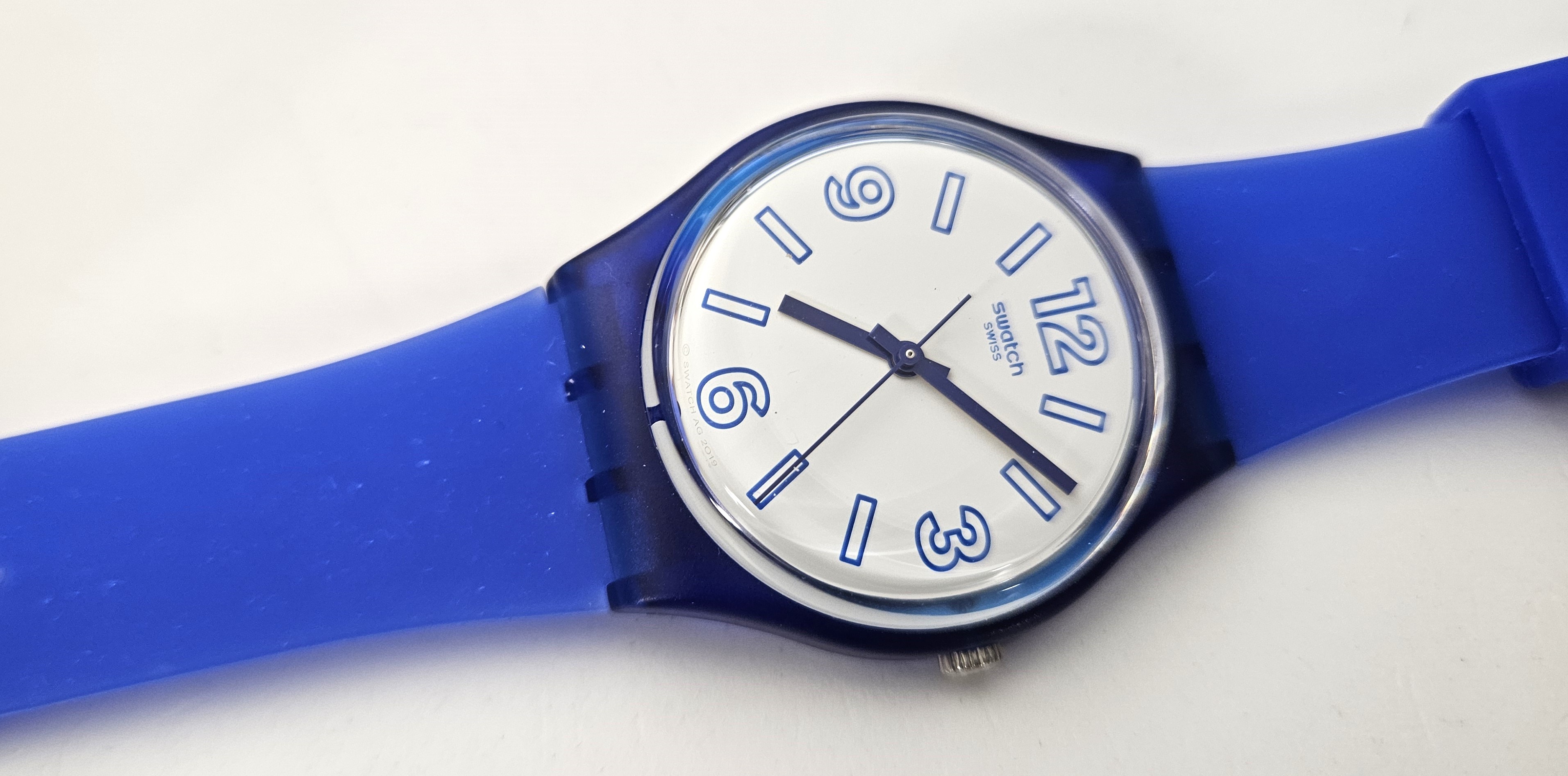 Swatch Gent 2019 - GN268 - Electric Shark - NUOVO - perfettamente funzionante con la sua custodia - Display analogico - Resistente all'acqua fino a 3 bar - Tipo di movimento Quarzo Svizzero - Cassa in plastica e Cinturino in gomma - 34 mm