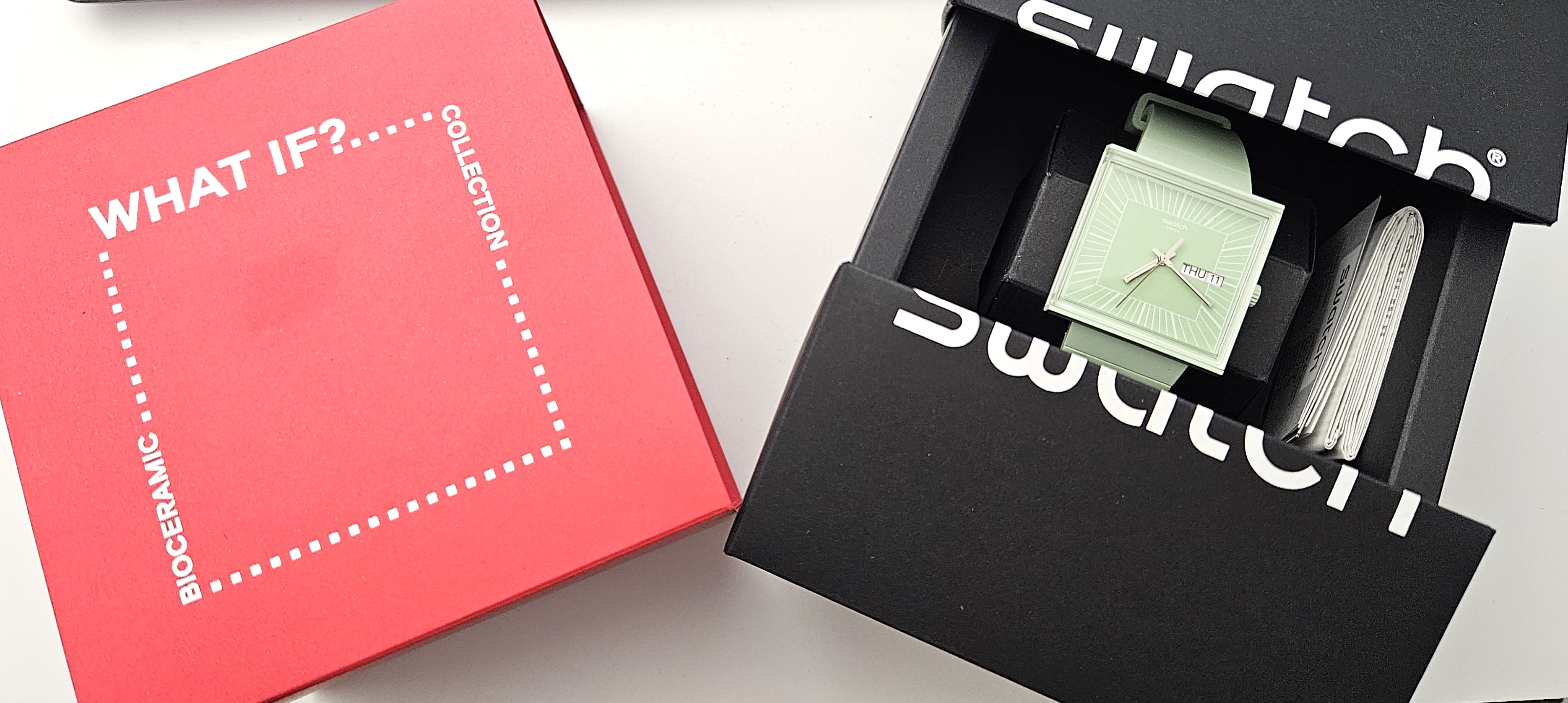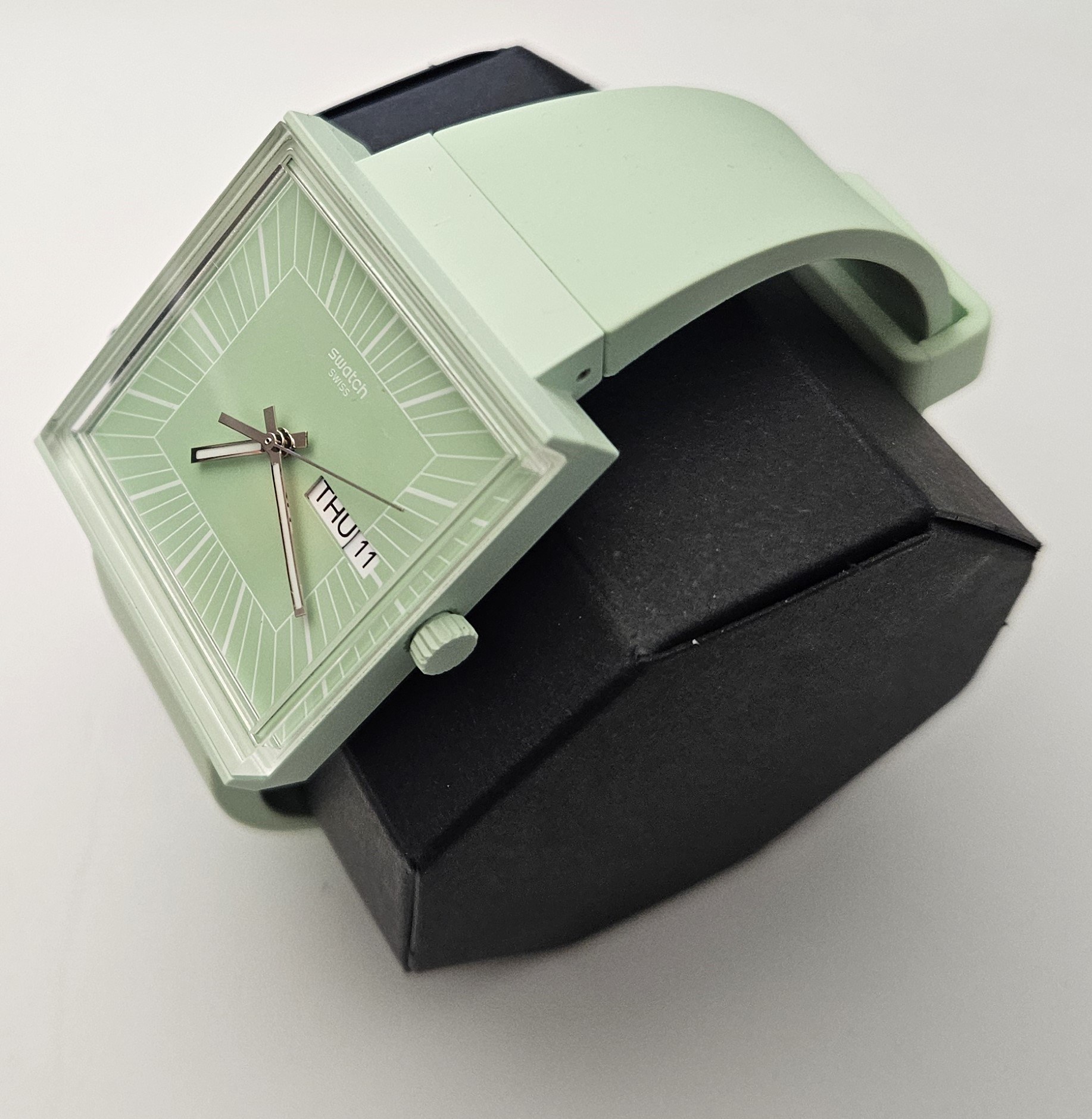 Swatch Square 2023 - SO34G701 - What if... Mint ? - Nuovo - perfettamente funzionante con la sua custodia originale - diametro 33 x 33 mm - Display Analogico - Resistente all'acqua fino a 3 Bar - Tipo di movimento Quarzo Svizzero -