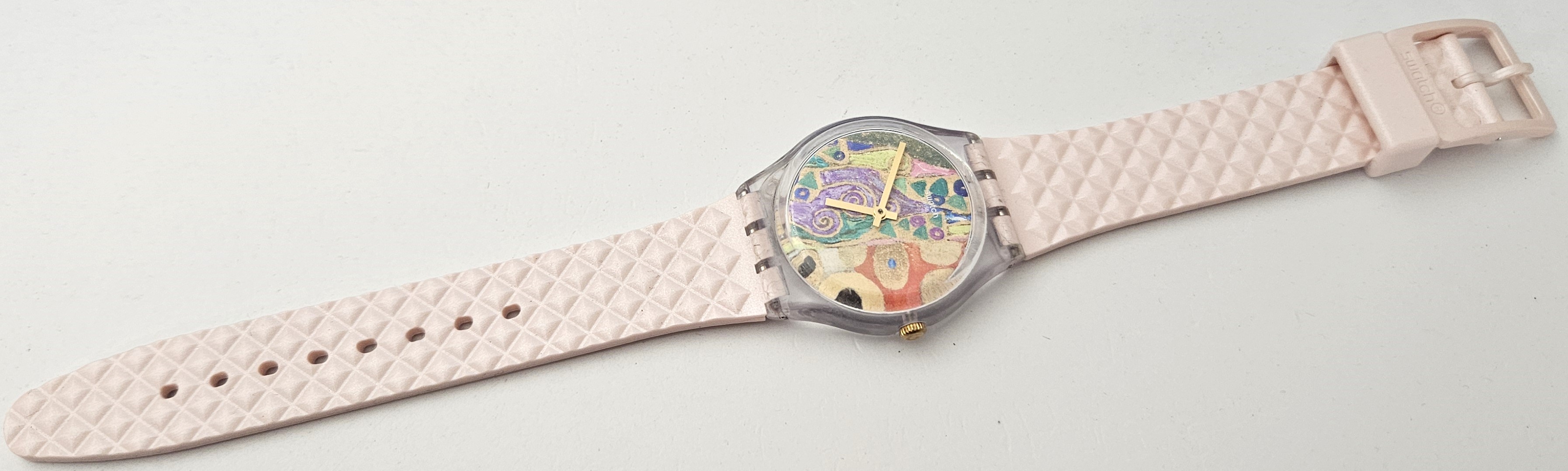 Swatch Special Moma 2021 - GZ349 - Hope II By Gustav Klimt - Leggermente usato - perfettamente funzionante senza la sua custodia originale - Display analogico - Resistente all'acqua fino a 3 bar - Tipo di movimento Quarzo Svizzero - Cassa in plastica e Cinturino in silicone nuovo - dm cassa 34 mm.