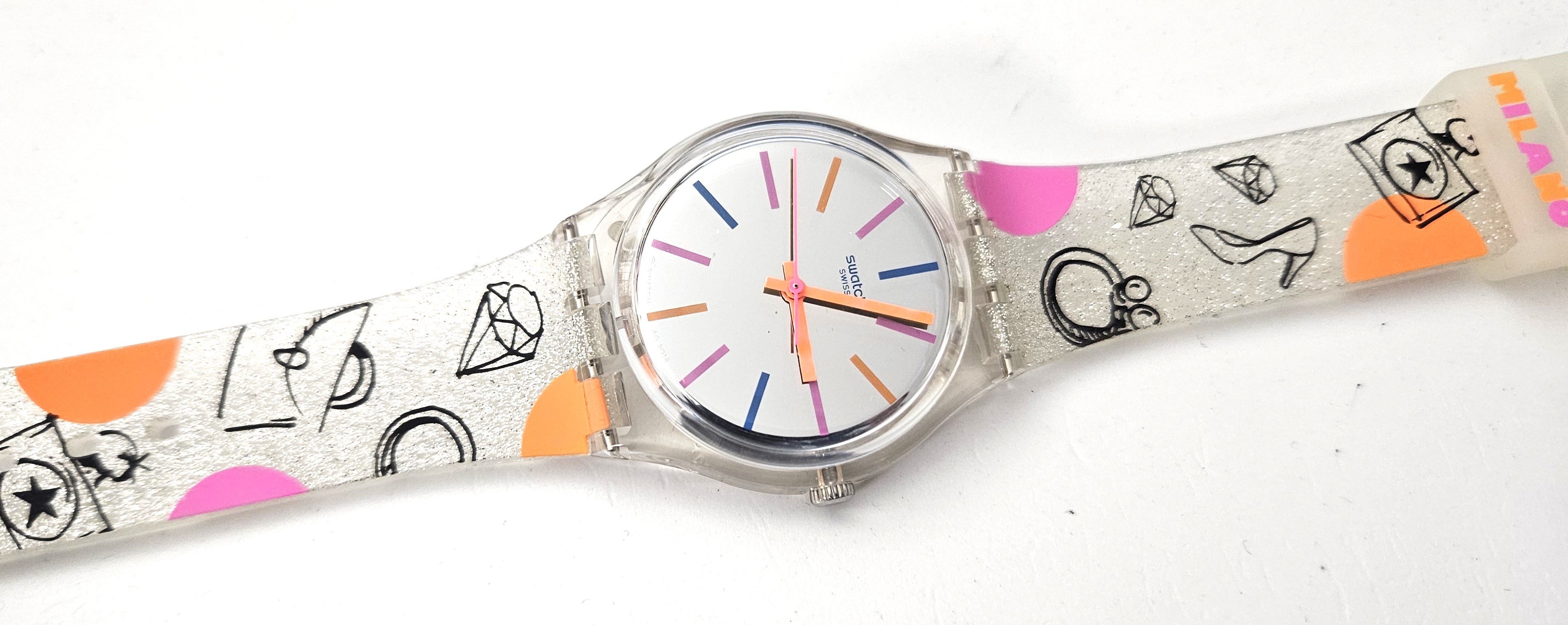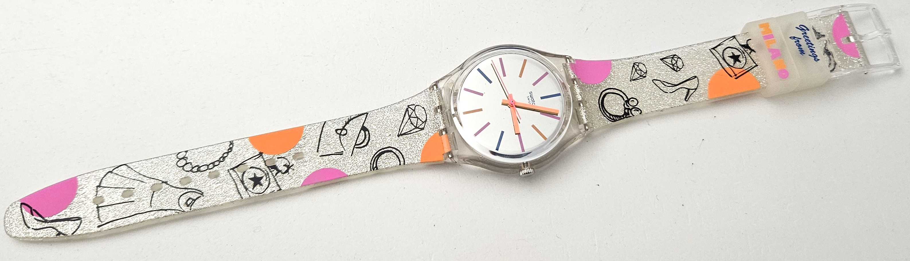 Swatch Special 2019 - GZ330 - Quadrilatero - Greetings from Milano - NUOVO - perfettamente funzionante nella sua custodia originale - Display Analogico - Resistente all'acqua fino a 3 bar - Tipo di movimento Quarzo Svizzero